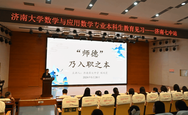 一行的到来表示热烈欢迎。她表示,此次共建实践教学基地,是济南七中与高校共同推动数学教育的一项重要实践,也是双方实现优势互补、合作双赢的创新举措,实践教学基地的建设必将推动双方在数学教研、人才培养等方面充分交流与深度融合。