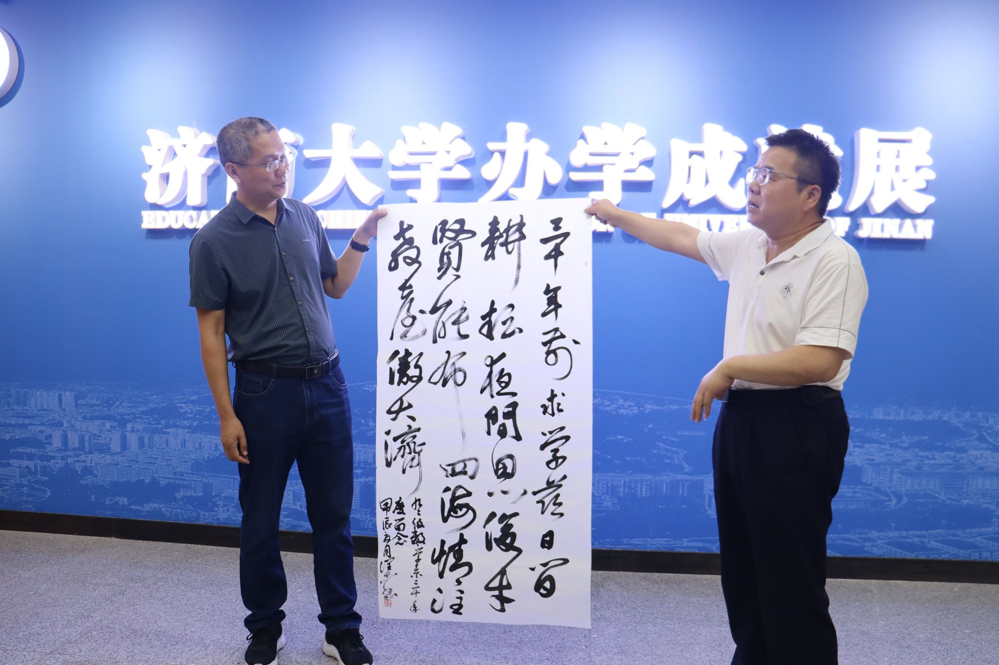 捐赠了自己亲手撰写的书法作品,饱含了对母校的深厚情谊,寄托了对母校未来发展的美好祝愿。