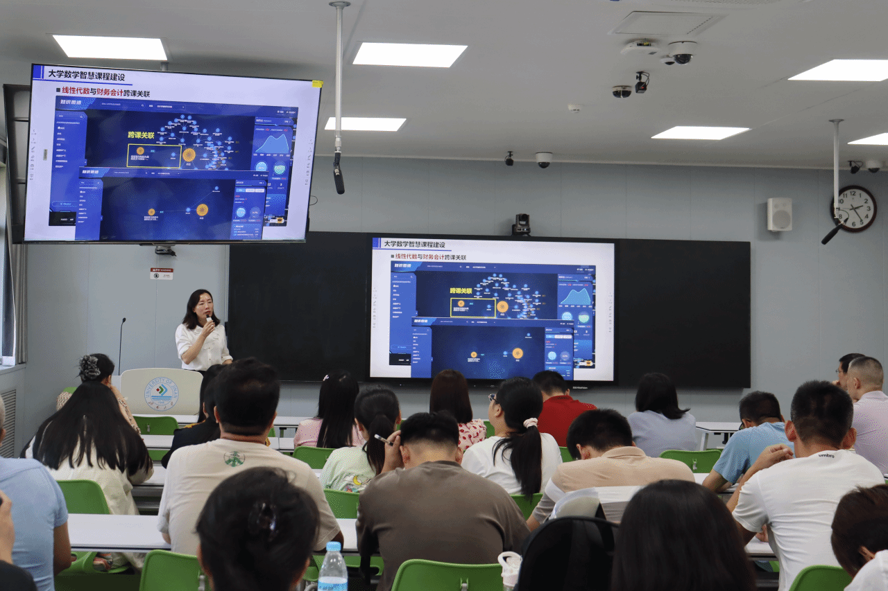 报告会上,刘洪霞教授通过“AI数字人课堂”等实例分析,阐述了人工智能如何与混合式教学深度融合、如何为传统教学模式带来革新,同时展示了人工智能技术在提升教学效率、个性化学习等方面的巨大潜力,为达成全面育人目标提供了切实可行的策略。报告聚焦大学数学课程群知识图谱的构建,详细解析了知识图谱在梳理课程体系、促进知识融合中的重要作用。为推进数智赋能教学,刘洪霞教授针对大学数学教学的新范式提出了若干前沿探索。