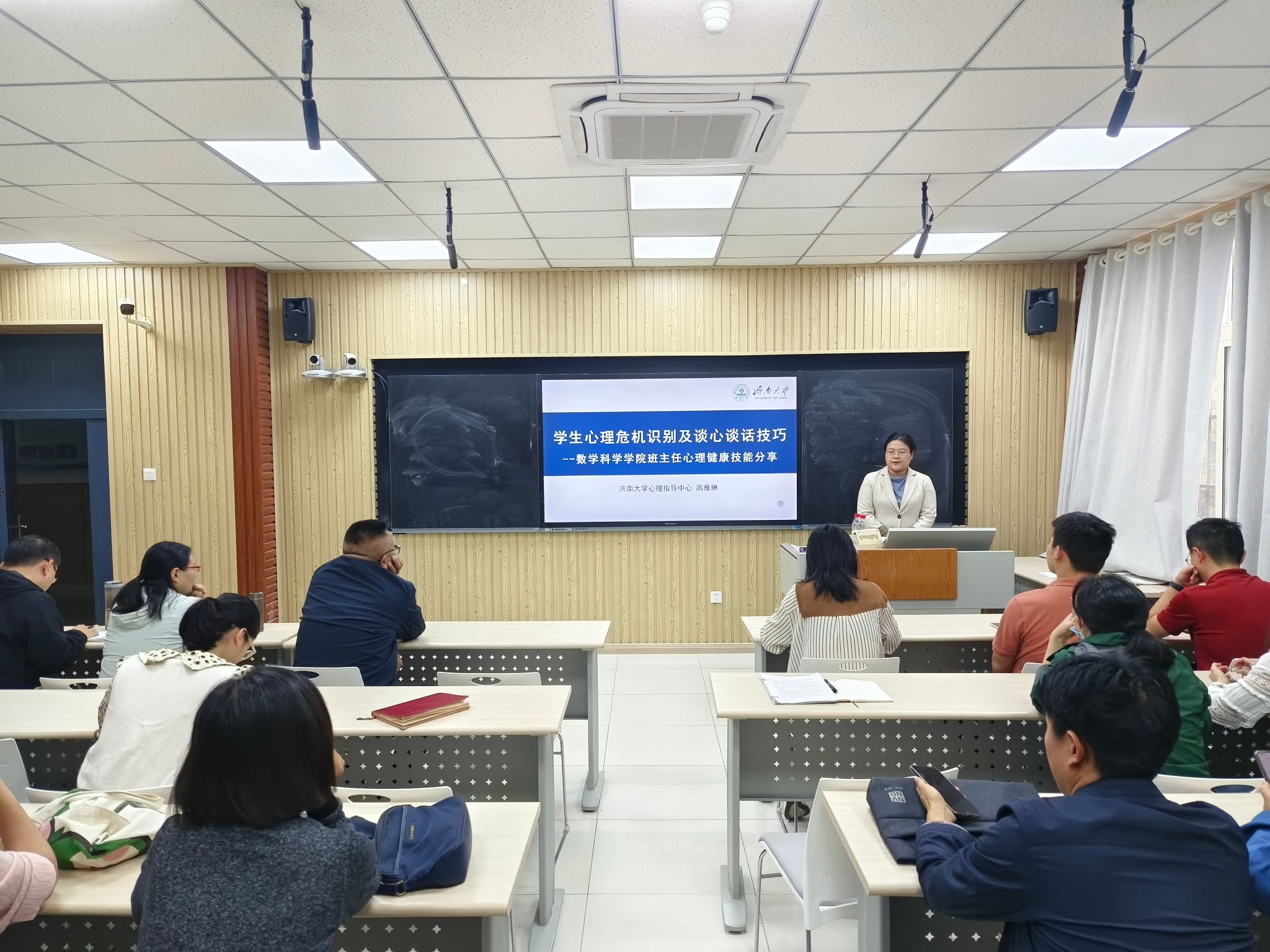 在七教214召开全体班主任工作会议暨心理健康教育培训会,会议邀请校心理指导中心专职教师高雅琳做了题为《学生心理危机识别及谈心谈话技巧》的辅导报告,娱乐城App
