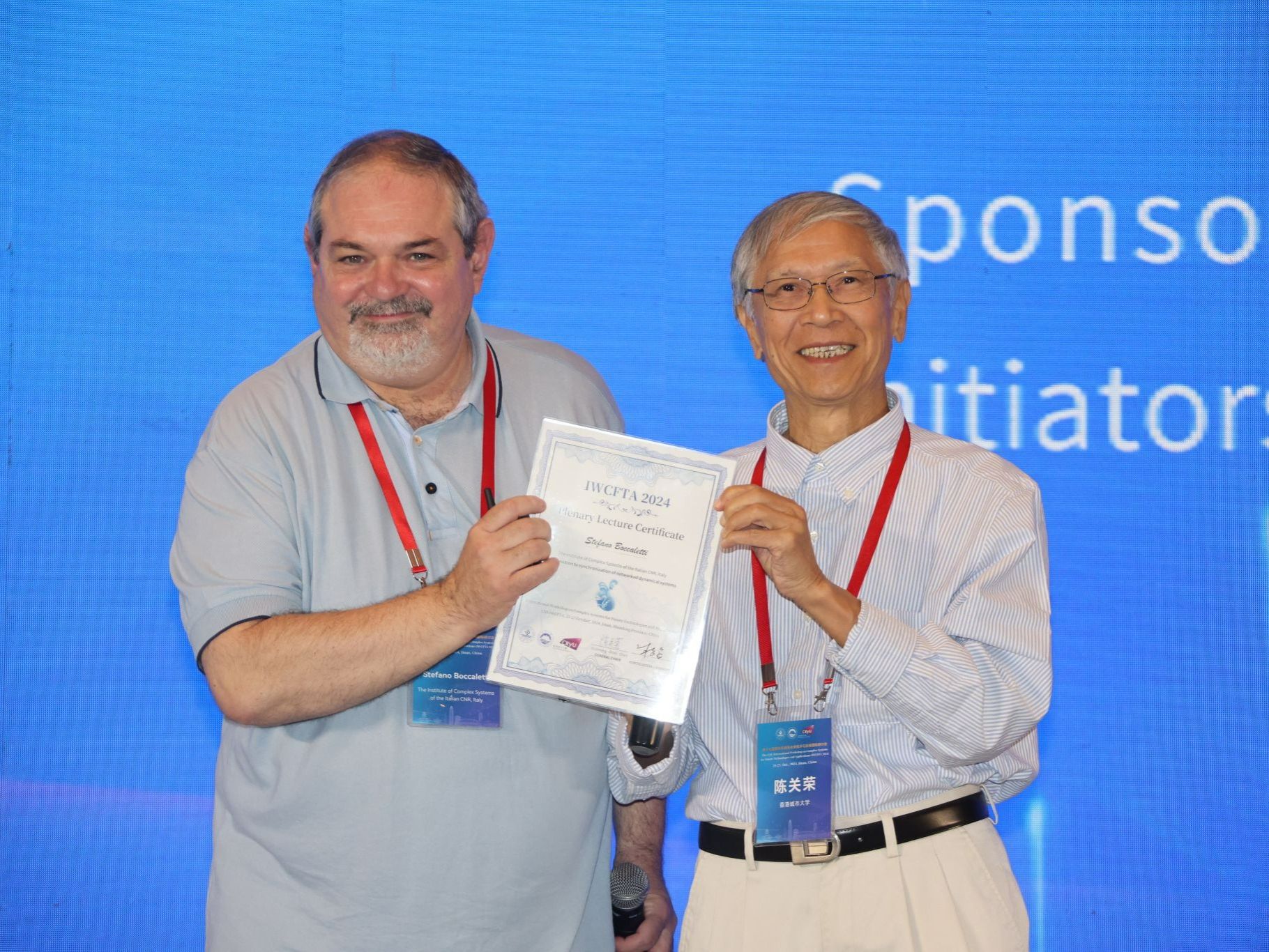 马来•班纳吉(Malay Banerjee)教授作题为“图灵域外检测图灵模式的数值延拓(Numerical continuation to detect Turing pattern outside the Turing domain)”的报告;中国香港城市大学协理副校长谢智刚教授以“面向更绿色未来的演变电网(The evolving power grid towards a greener future)”为题讨论了电力电子系统渗透到电网中的各种电路和系统问题及对电网持续演变的影响;加拿大滑铁卢大学刘新芝教授分享了在领导者—跟随者时滞多智能体系统的共识混合协议时间延迟方面的观点;北京航空航天大学副校长吕金虎教授通过线上的形式与大家讨论群体智能感知和协同控制的新进展相关的问题;西南大学的王丽丹教授作题为“类脑计算与智能控制(In-memory computing memristor device and its AI accelerators)”的报告;电子科技大学卢多维科·米纳蒂(Ludovico Minati)教授作题为“跨越神经元与硅:关于异常电子电路与神经科学之间关系的一些思考(Across neurons and silicon: some ideas about the relationship between unusual electronic circuits and neuroscience)”的报告;广东工业大学的禹思敏教授与大家共同探讨了混沌密码的分析与设计问题。