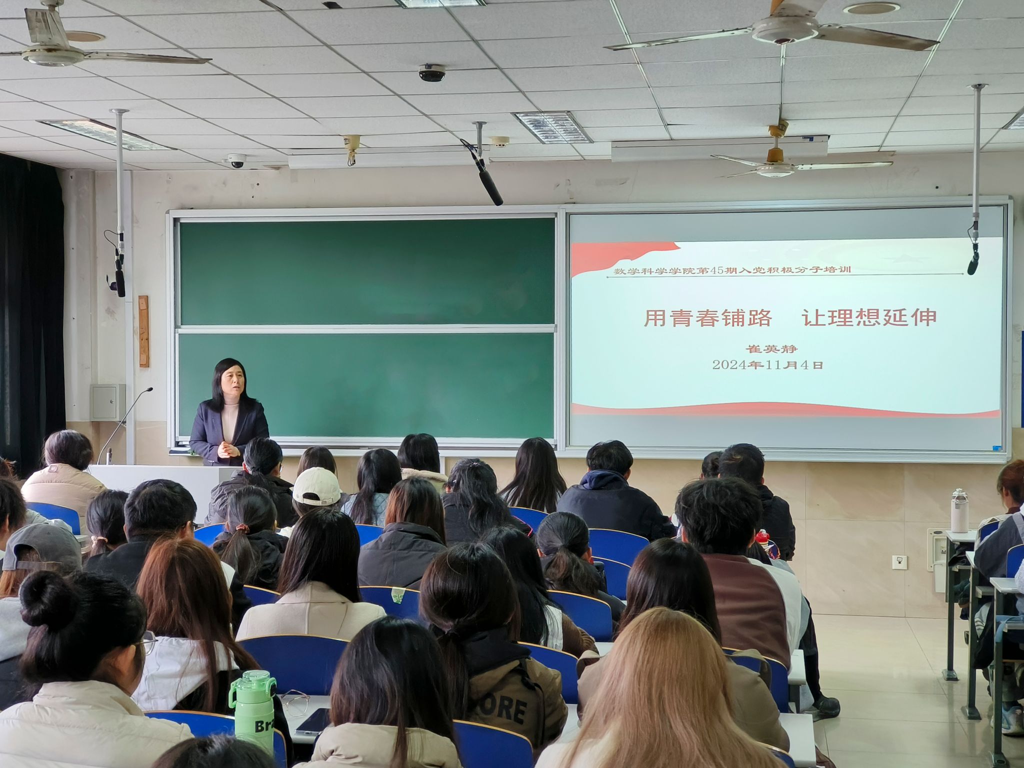 崔英静以发展党员的十六字方针为切入点,引导同学们思考什么是党员,为什么入党,怎样才能成为一名合格的党员。她强调,一要端正入党动机,践行全心全意为人民服务的宗旨;二要坚守为中国人民谋幸福,为中华民族谋复兴的初心使命;三要锤炼优良的学习、生活和工作作风,加强党性修养,在日常学习、工作和生活中,发挥模范带头作用。最后,她勉励同学们自觉加强学习,深入领会党的二十届三中全会的重大意义、总体要求和重大举措,志存高远、脚踏实地,为娱乐城App