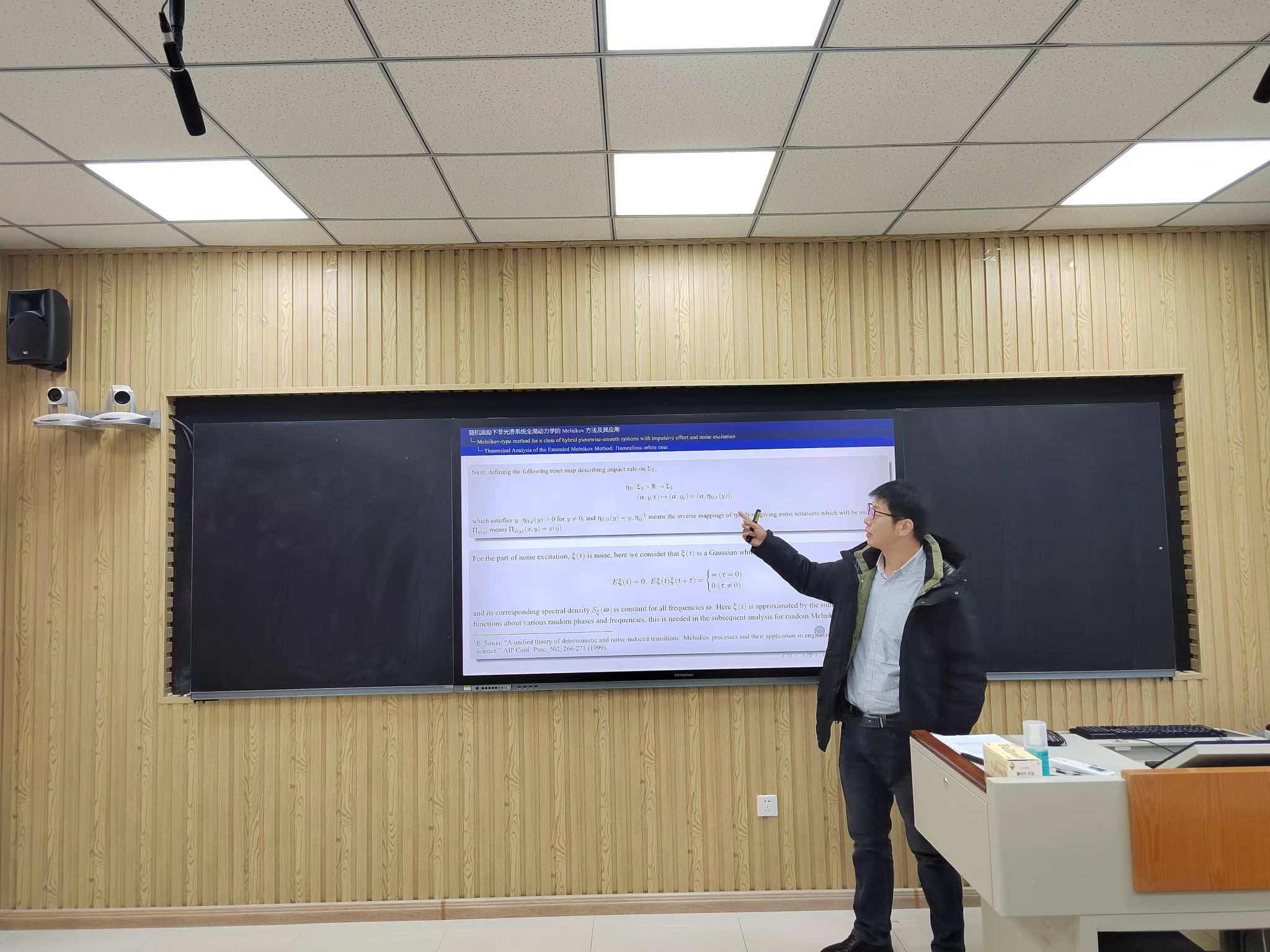 魏周超教授作了题为“随机激励下非光滑系统全局动力学Melnikov方法及其应用”的学术报告。本次报告会由副院长靳绍礼主持,娱乐城App