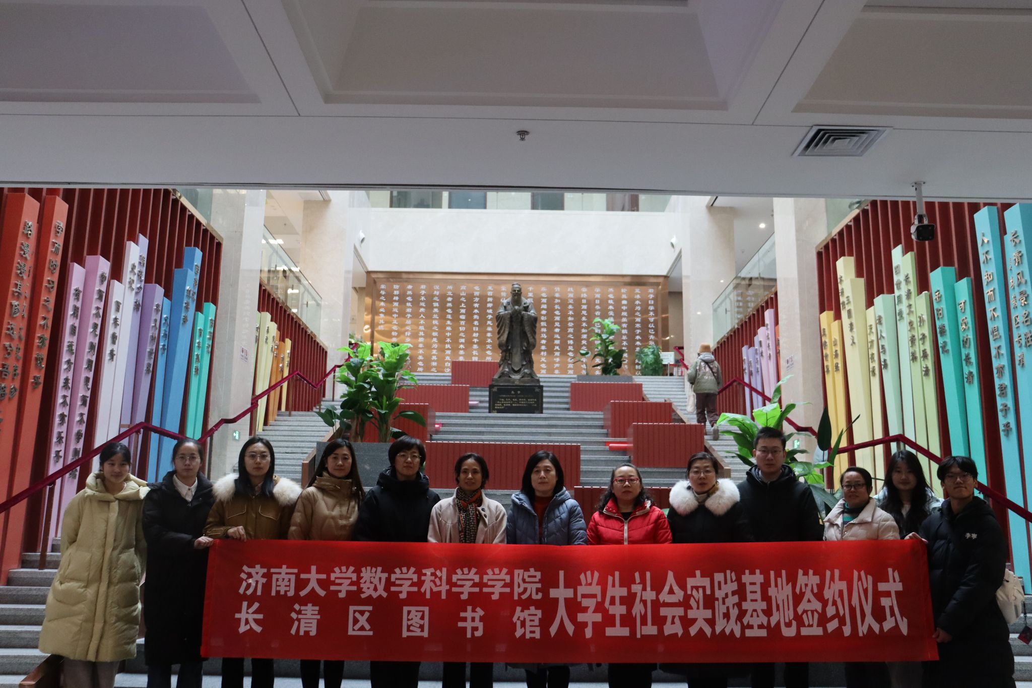 于1月11日前往长清区图书馆开展共建大学生社会实践基地签约挂牌仪式,在实践育人方面进一步深化与公共服务机构合作领域和空间,充分发挥各自优势,实现资源整合,发扬志愿服务精神,推动公益服务项目向纵深发展。