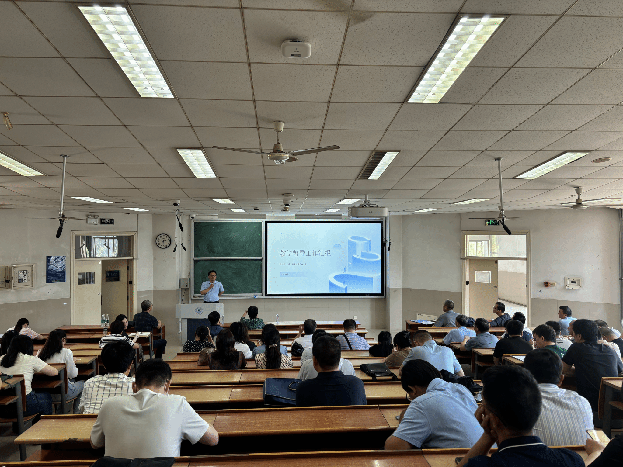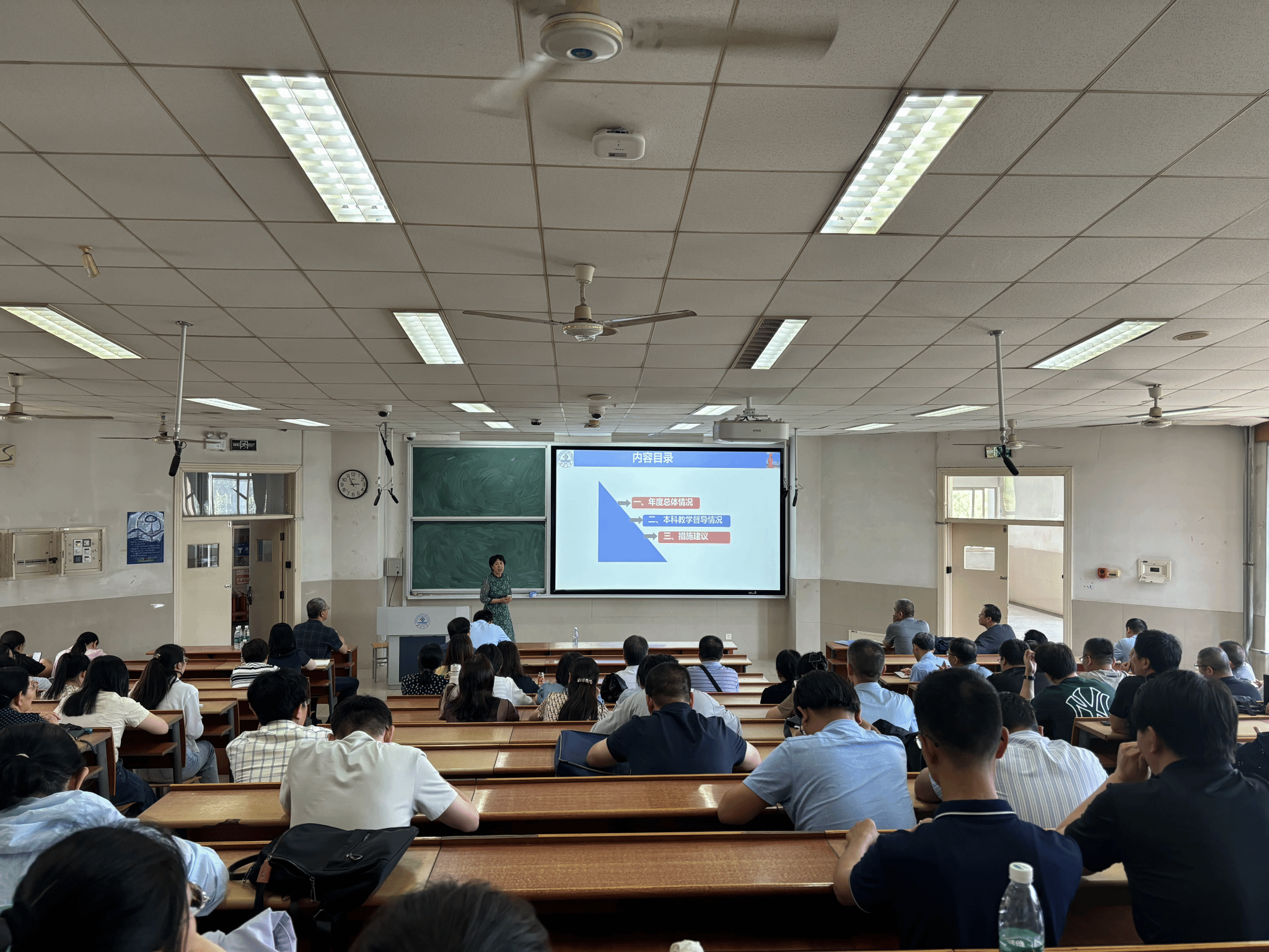 教学督导组,从“本科督导总体情况、本科教学督导情况、措施建议”三个方面进行了教学督导反馈,王教授详细阐释了教学督导员的工作要求与内容,梳理了2024年度督导工作的各项情况,对上学期和本学期的听课巡课、教学档案检查、实习实践基地等专项督导存在的问题进行了具体反馈。她明确指出,教学督导秉持 “以督促导、以导带督、督导结合、重在指导”的原则,建议教师们主动加强与教学督导的沟通交流,充分借助督导力量提升自身教学水平,并提出了一系列具有针对性的改进措施与建议。