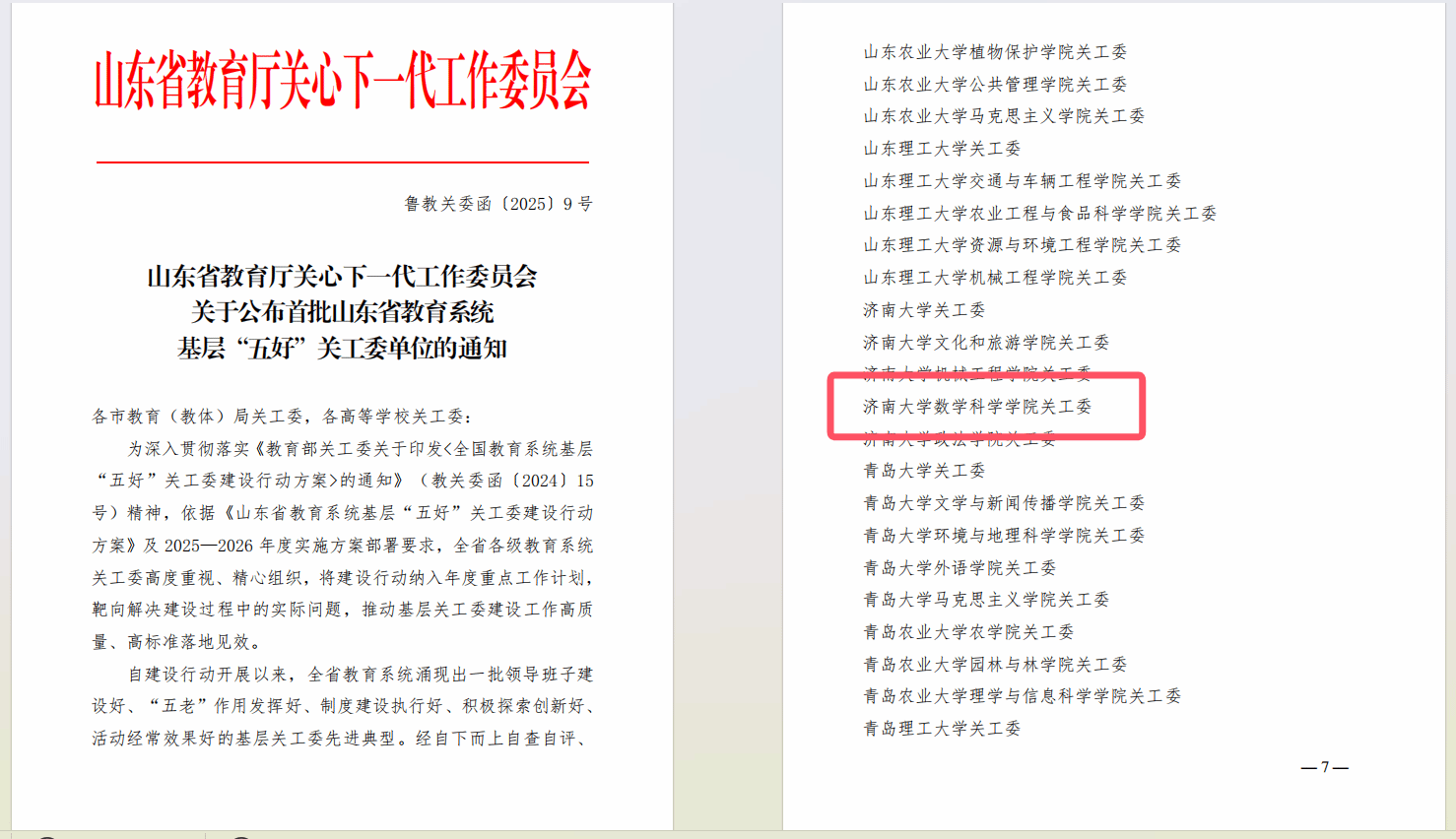 近日,山东省教育厅关心下一代工作委员会公布首批山东省教育系统基层“五好”关工委单位名单,娱乐城App