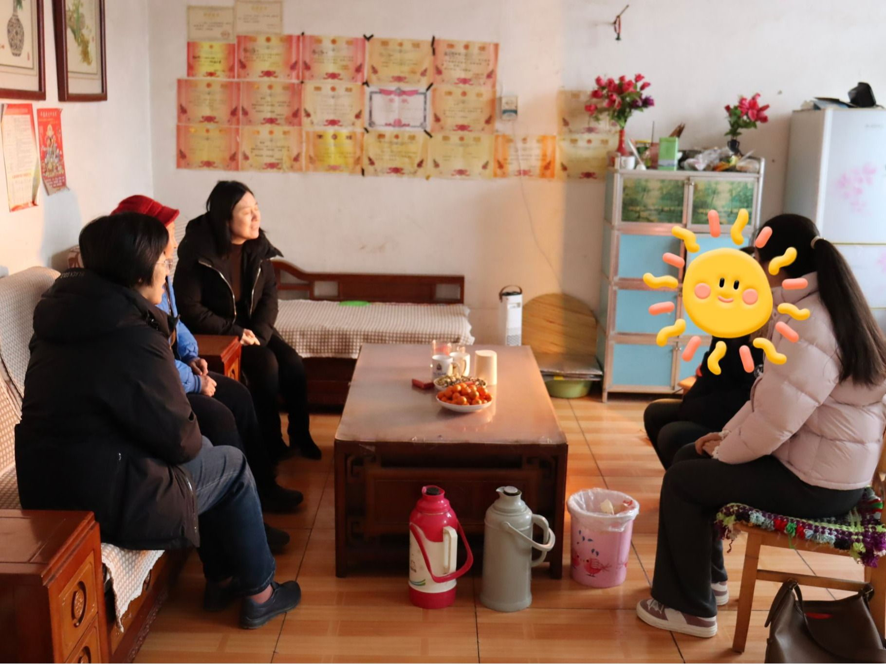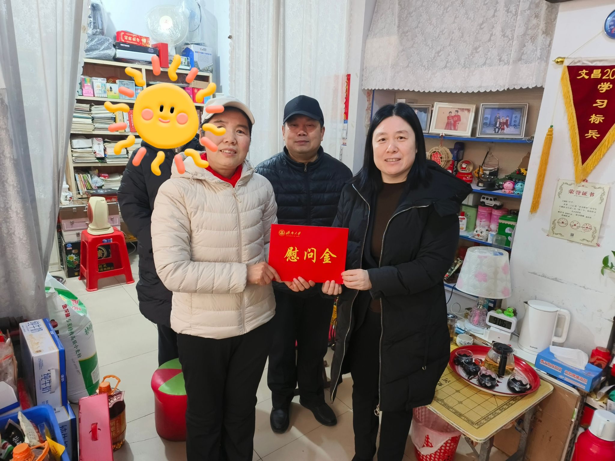 老师与学生及家人亲切交流,细致了解其家庭实际困难与需求。该生家庭为脱贫享受政策户,成长环境较为特殊,主要依靠亲属照料和政府补助生活。老师们细致询问其学业与生活状况,肯定其在校获得的竞赛成绩,并送上娱乐城App