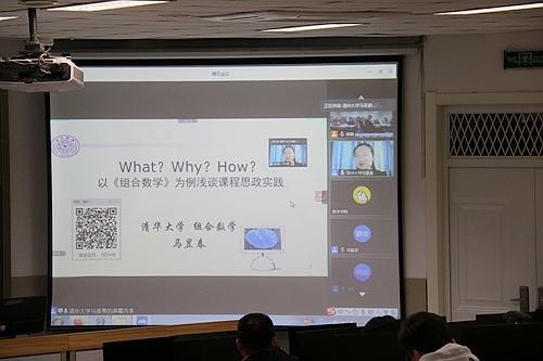 随后,与会教师共同聆听了由北京高校第八届青年教师教学基本功比赛一等奖、清华大学青年教师教学优秀奖获得者马昱春副教授所作的课程思政专题讲座,讲座题目是《以组合数学为例浅谈课程思政实践》。马老师从为什么(课程思政目标)、讲什么(课程思政内容)、怎么讲(课程思政方法)三个方面分享了她的经验,对课程思政设计中的常见困惑和面临的主要问题进行了剖析,并辅以自己课堂教学中多个实际案例,讲解如何发掘专业课程思政元素,找到理工科课程思政教学设计的关键点,达到同向同行、协同育人的效果。