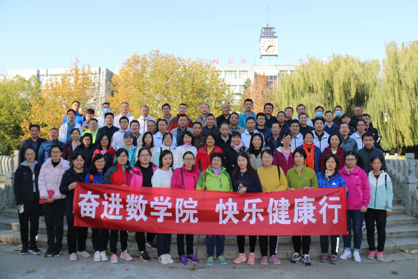 ,快乐健康行”的口号声,登山活动正式拉开序幕。此次登山活动以绿泉广场为出发点,经过运动场、九食堂,沿着南院的台阶拾级而上,终点为马武寨休闲广场。登山过程中,大家一路上欢声笑语,尽情享受着运动带来的快乐。临近终点时,大家相互鼓励、相互帮助,你追我赶、奋勇向前,奋力完成最后的冲刺。经过激烈的比拼,最终20名教工获得优胜奖,70余名教工获得参与奖。