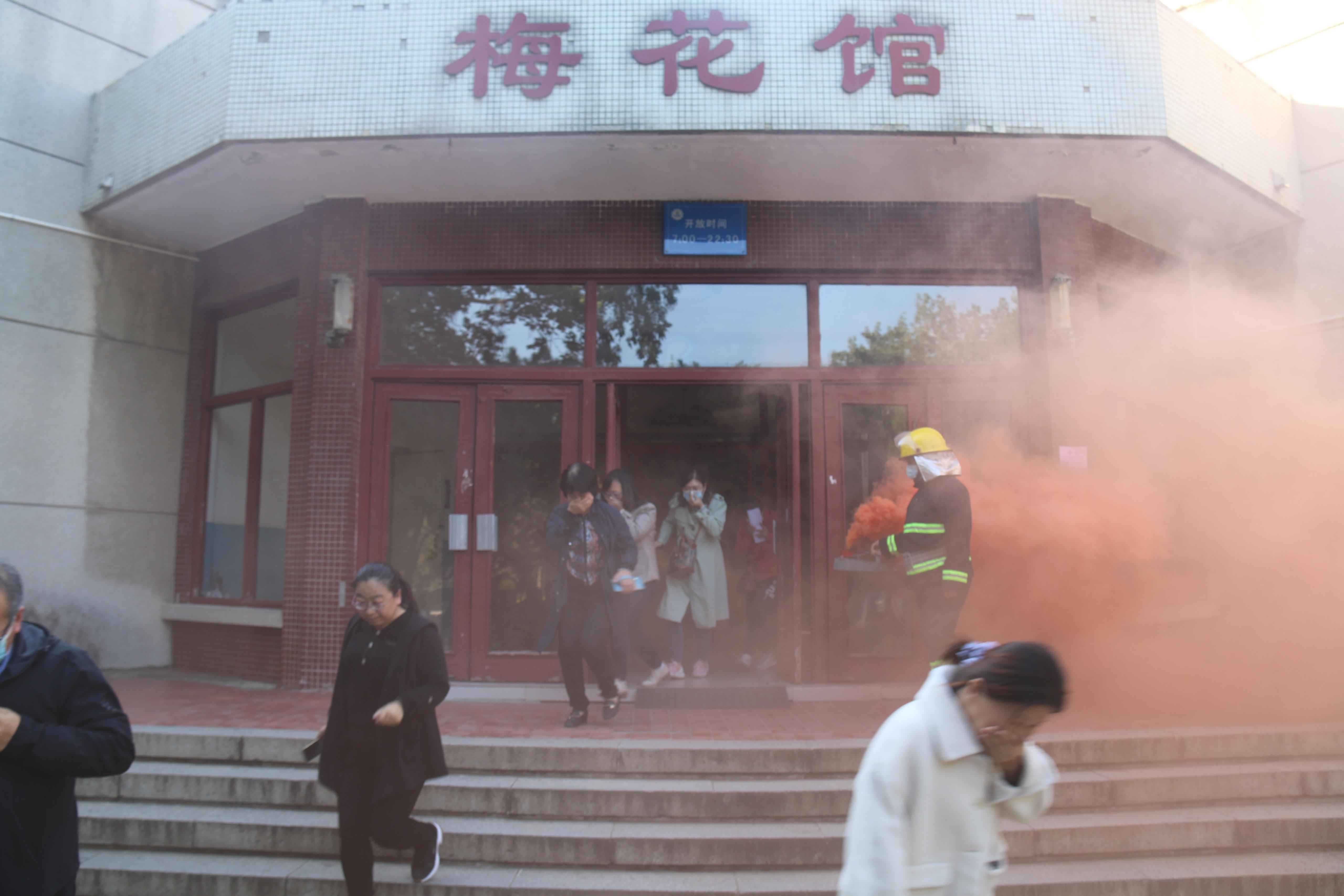 安全管理处消防管理科相关人员为全体教职工普及了消防安全知识,详细介绍了灭火器的使用方法与注意事项。逃生疏散环节,消防工作人员在梅花馆门前设置了模拟烟雾逃生场景,警报响起,教职工捂住口鼻,做好防护,依次有序地撤离到安全地带。演练过程中,全体教职工和研究生全员参与到灭火实战中,“提、拔、握、对、喷”,每一步都力争做到精准。经过实战演练,有效提升了师生员工的疏散逃生和灭火实战能力。
