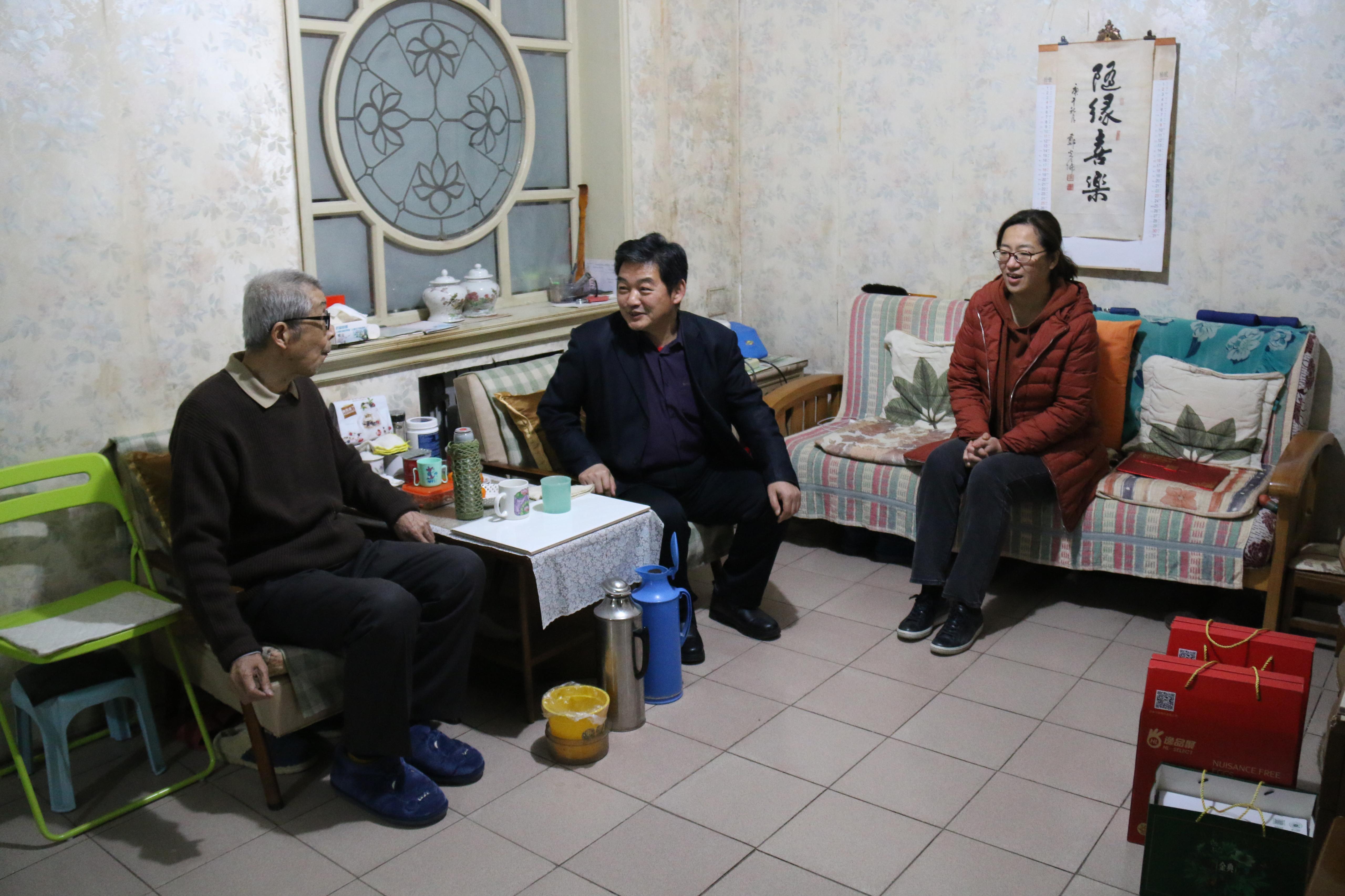 韩振来教授、辅导员吴立军专程前往许老师家中接受图书捐赠。