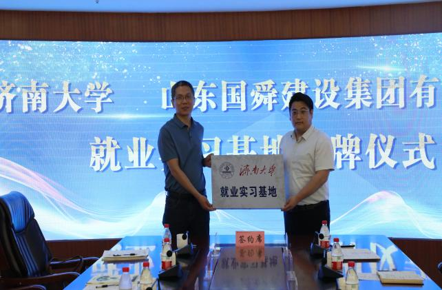 与山东国舜集团校企合作暨共建基地挂牌仪式于山东国舜集团园区召开。山东国舜集团董事长孙德山,副总经理冯超、邢帅帅,信息化办公室技术总监卢忠阳,办公室主任宋甲亮,人力资源部部长郭付东,娱乐城App