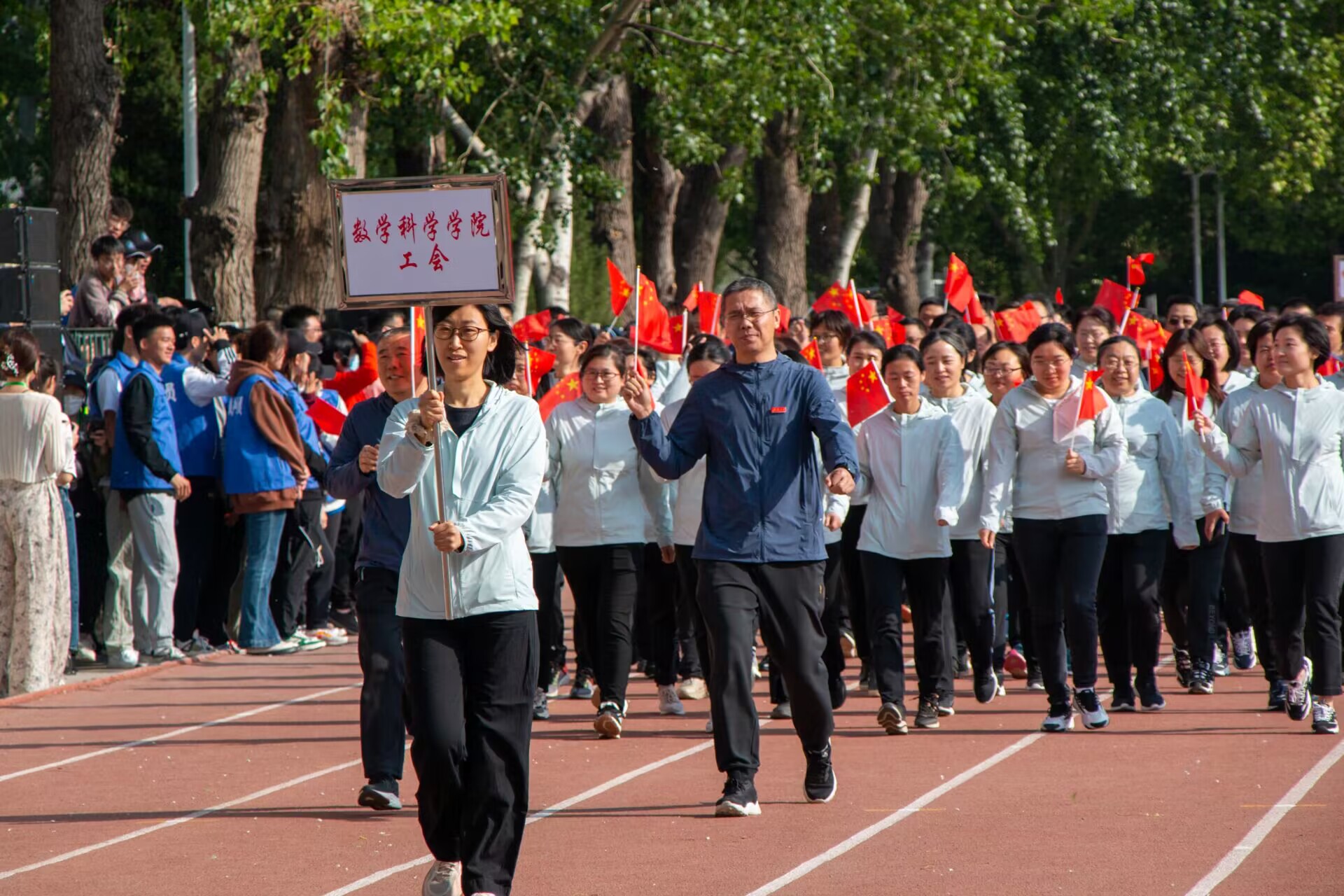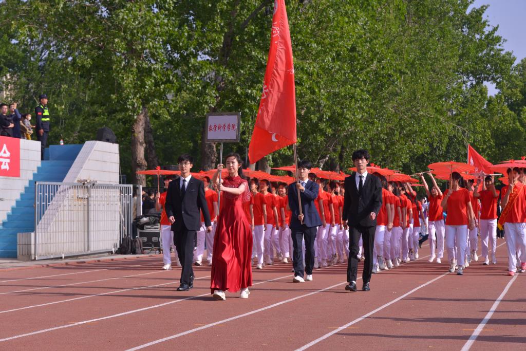 27日上午,运动会开幕式如期进行,数院学子簇拥着油纸伞围成的红旗,高呼着“数理天下,微分几何,看我数院,气势磅礴”的口号入场。伴着雀跃的欢呼、热烈的掌声,娱乐城App