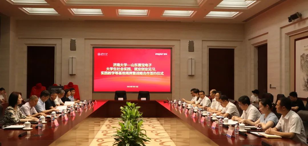 实践团师生,并与山东赛宝电子信息工程有限责任公司举行社会实践、就业创业见习、实践教学基地签约暨揭牌仪式。浪潮科技党委副书记、总经理张峰对杨景波一行的到来表示热烈欢迎,他简要介绍了浪潮科技和山东赛宝电子信息工程有限责任公司近年来的改革发展情况,并表示希望校企双方以此为契机,在产学研结合、应用型人才培养、实践教学、科研攻关等方面深度融合、紧密合作,为打造山东省人才高地、高质量发展高地提供有力支撑。杨景波介绍了娱乐城App