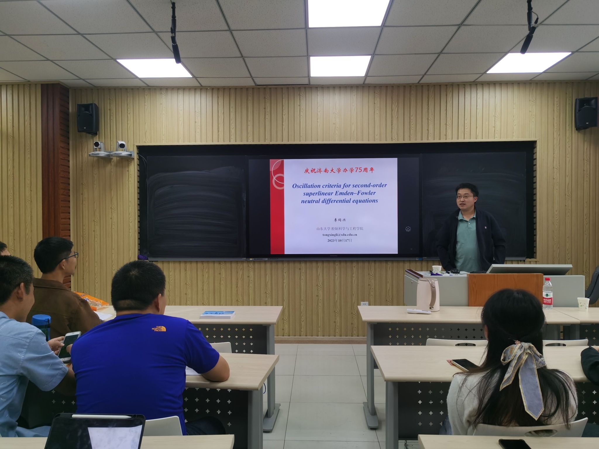 2007届数学与应用数学专业校友李同兴。专家学者们各自分享了他们在数学科学领域的最新研究成果和前沿动态,内容涵盖了多个领域,光炫教授在《Zero-Error Distributed Function Compression》中提出了两个二进制无内存源X和Y的零误差分布式函数压缩系统模型;周华成教授以《Recent progress in stabilization for uncertain systems described by PDEs》为题介绍偏微分方程描述的不确定系统稳定的最新进展;李同兴教授在《Oscillation criteria for second-order superlinear Emden-Fowler neutral differential equations》中介绍了二阶超线性埃姆登-福勒中立性微分方程的振荡准则。