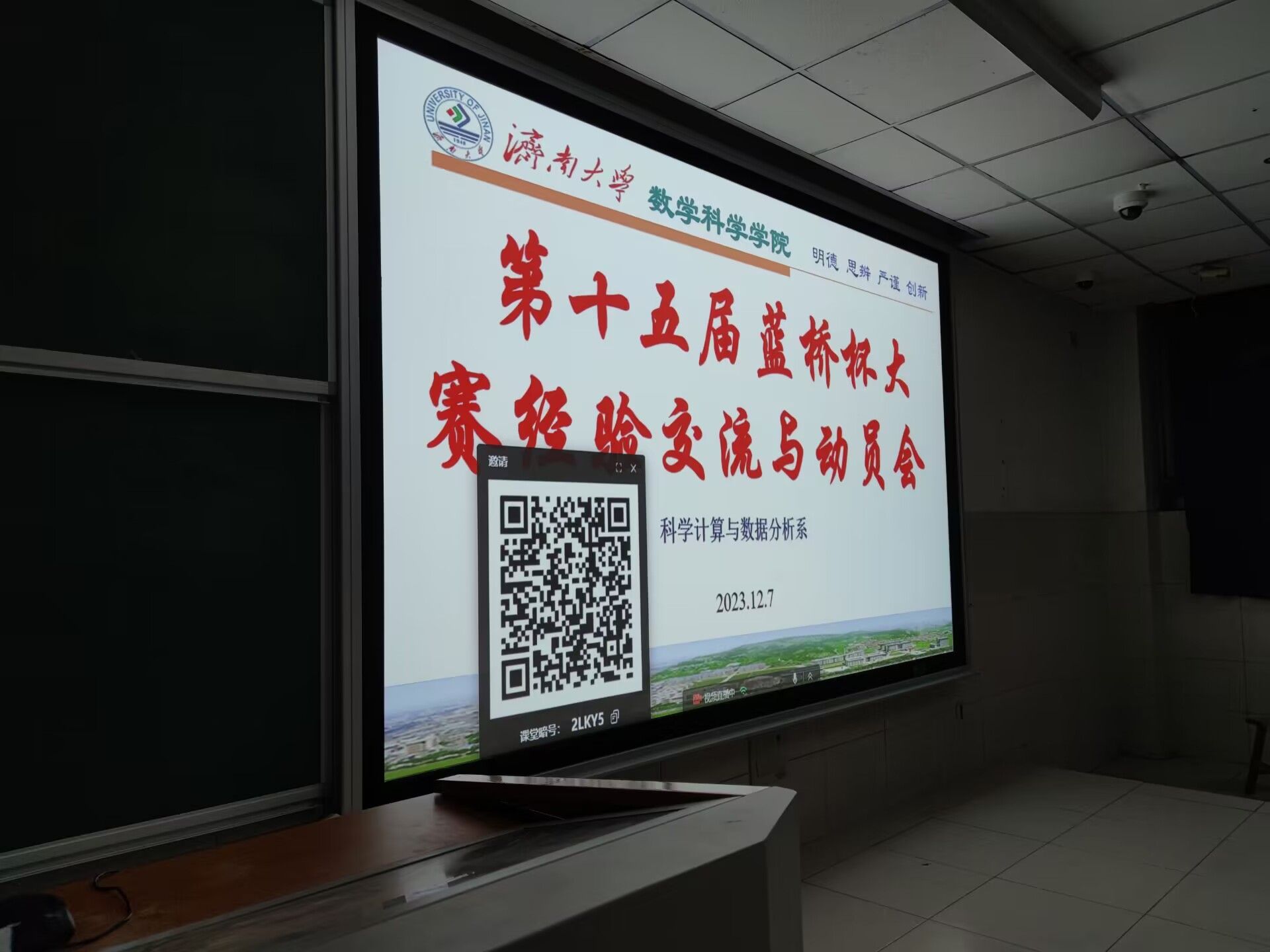 于12月7日举办“蓝桥杯”大赛经验交流与动员会,会议由科学计算与数据分析系主任王涛老师主持。