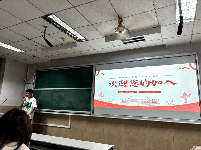风采;学术创新部则是通过举办的学术研究与交流会,学术讲座、研讨会、论文竞赛等活动,让同学们了解学术部,憧憬学术部。各部门代表不仅介绍了部门工作,还分享了自己在研会的成长经历和感悟。他们用真诚的话语表达了对研究生会工作的热爱和对新成员的期待,让新生们深刻感受到研究生会是一个温暖、团结且充满机遇的地方。在提问环节,新生们积极踊跃,就自己关心的问题进行提问。各部门代表耐心解答,为新生们消除疑虑,进一步激发了他们加入的热情。