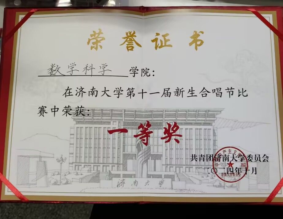 当队员们踏上舞台,璀璨的灯光洒落在他们身上,数院学子们光芒四射,彰显青春活力。伴随着指挥棒轻轻挥下,激昂的音乐奏响,优美的旋律与和谐的和声在空气中悠然回荡,合唱队员们用那充满力量的歌声传递爱国力量与希望之光。校歌《与我同行》,充分展现了同学们对母校的赞美与深深归属感;《强国一代有我在》则如同激昂的战歌,深切表达了同学们对民族复兴以及奋进新征程、追逐新梦想的美好祝福。数院学子们用深情的歌声,唱出了对祖国的诚挚祝福,唱响了强国复兴的时代强音。