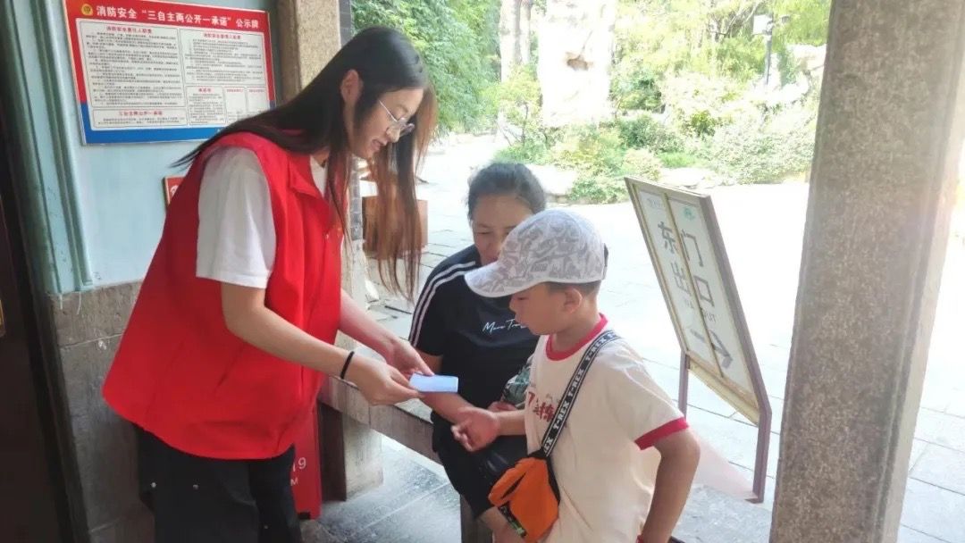 活动中,志愿者们分为四组,分别在东门、南门、北门及游客中心进行志愿服务。在服务过程中,他们积极协助现场工作人员的工作,维护景区秩序,用真诚和热情为游客们提供引导与指路服务,在不断学习与服务的同时领悟吃苦耐劳的精神。志愿服务不仅是一种付出,更是一种收获。志愿者们通过实践活动的不断开展,深入了解了景区文化,并向游客们传递文明旅游、保护环境的公益理念,对景区打造积极的旅游环境产生了有利的影响。与此同时,同学们饱满的热情和耐心的讲解得到了游客们和工作人员的一致好评。