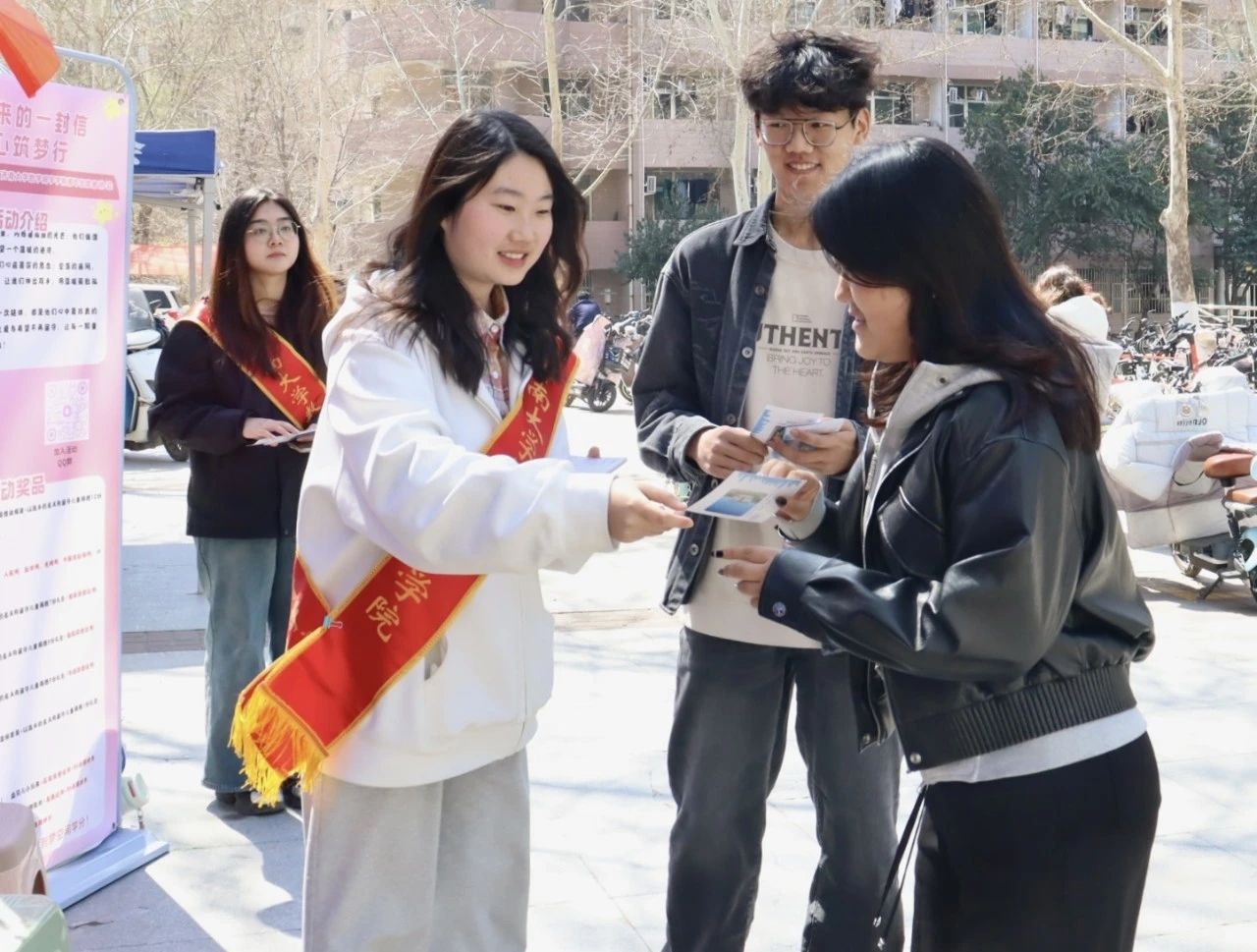 学生会青年志愿者协会于第八食堂广场和第七教学楼前举办“写给未来的一封信——童心筑梦行”活动。