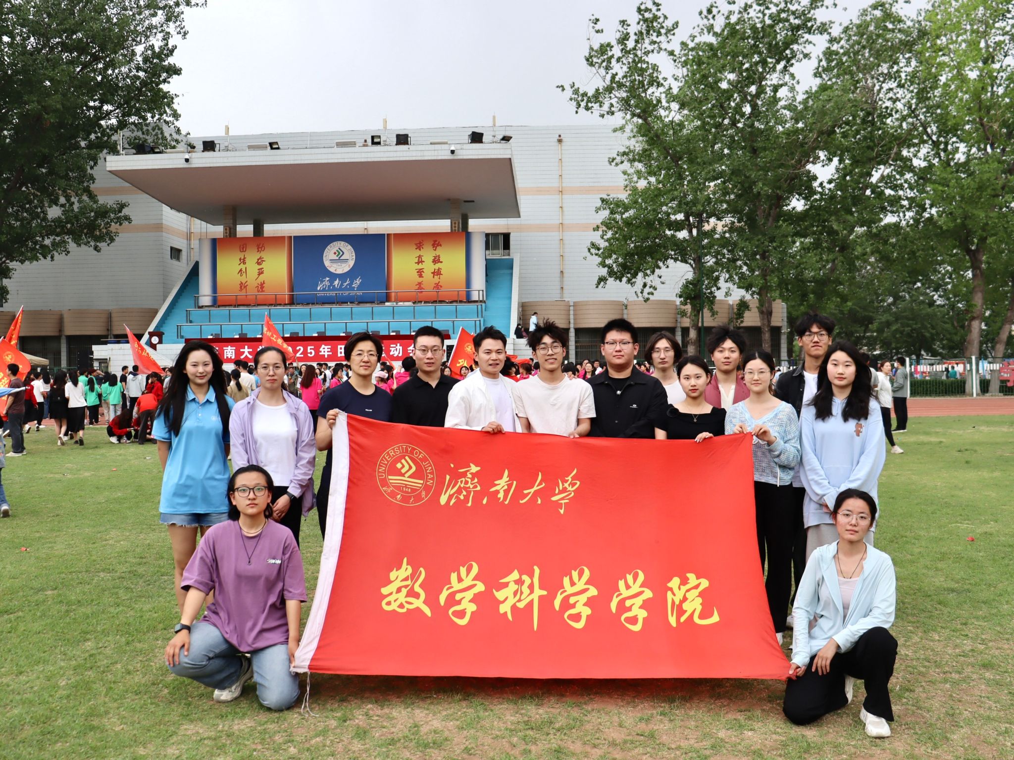 师生方阵迎着四月暖阳,步履铿锵、朝气蓬勃。他们手持“数理天下,微分几何,看我数院,气势磅礴”的创意展板,将严谨的学科精神与蓬勃的运动活力完美融合,展现了数学人锐意进取的精神风貌。