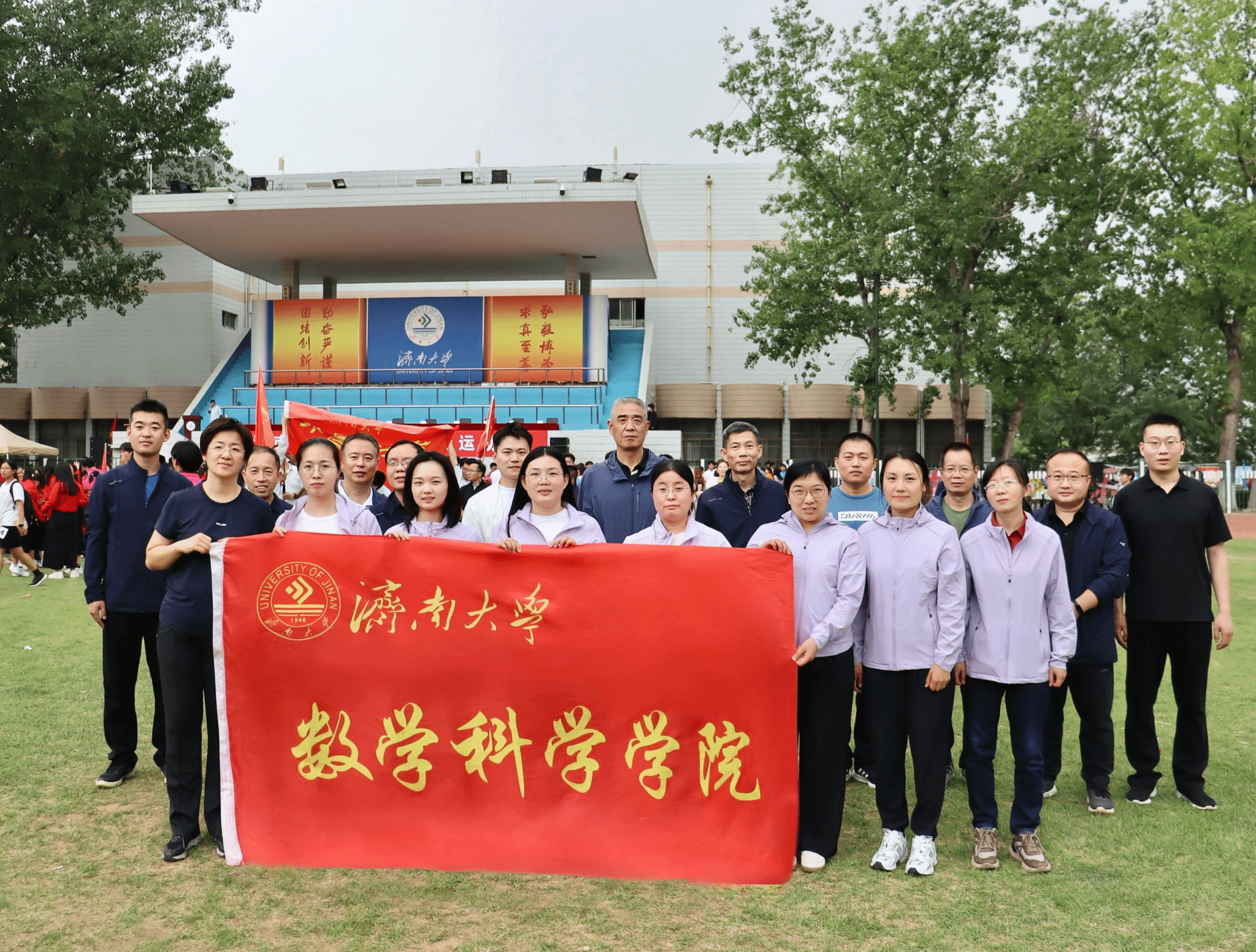 师生方阵迎着四月暖阳,步履铿锵、朝气蓬勃。他们手持“数理天下,微分几何,看我数院,气势磅礴”的创意展板,将严谨的学科精神与蓬勃的运动活力完美融合,展现了数学人锐意进取的精神风貌。