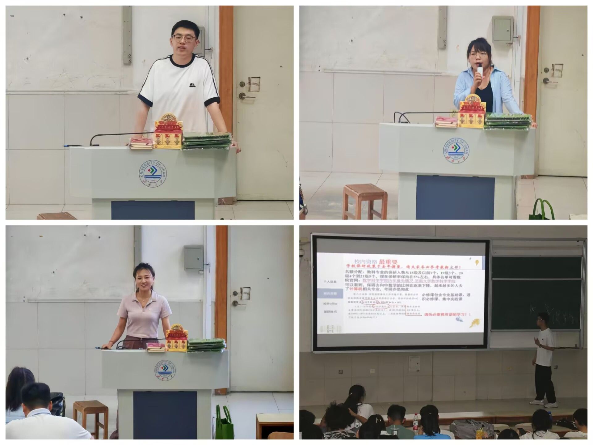 三位优秀学生代表及资深留学顾问张老师,围绕考研、保研、出国三个升学方向为同学们带来一场精彩纷呈的经验分享。分享会上,考研代表庞诗卉以自身从大一大二筑基到大三冲刺的备考历程为引,细致分享时间管理、资料筛选等实战心得,鼓励同学们坚定信心,持之以恒;赵骞飞则通过推荐实用考研资源、解读教辅使用方法及推荐公众号等方式,传递坚持精神。随后保研学长周文杰详细介绍保研的基本流程、所需材料以及个人经验,强调学术成绩、科研经历和社会实践在保研中的重要性。最后,留学顾问张老师则从留学娱乐城App