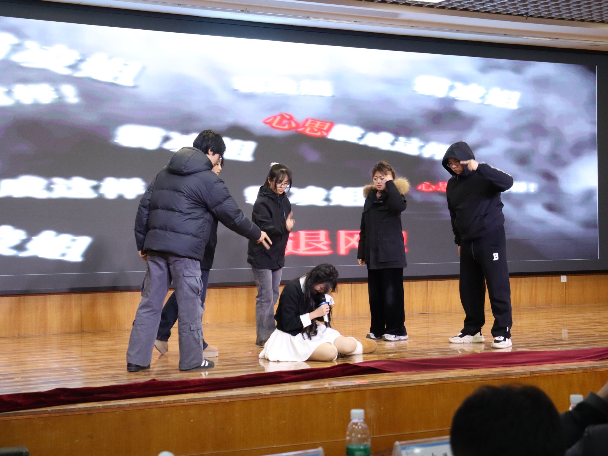 高度重视此次比赛,广泛动员,精心组织,师生共同打磨剧本、编排表演。演出作品《同学,你滤镜碎了!》聚焦当代大学生在人际交往、自我认知等方面的困惑与焦虑,讲述了主人公林晚因网络焦虑和主观偏见误解他人、随意给他人贴标签,与同学爆发激烈争吵,在打破偏见滤镜得知真相后真诚道歉却又引发他人对自己的网络暴力,最后好友挺身而出,选择原谅与帮助,林晚最终懂得在人际交往中只有打碎偏见的滤镜,那些藏在背后的戾气与偏见,才会被理性与善意抚平。演员们以饱满的情感和细腻的表演,将人际交往时的焦虑与朋辈互助的温暖融入剧情之中,传递出“打破偏见滤镜,拒绝网络暴力,用理性丈量世界,用善意温暖他人”的核心主旨,既赢得了评委的认可,也收获现场观众的热烈支持。