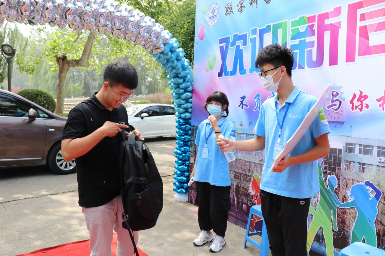 团委书记赵华磊,同时担任此次2020年的辅导员,询问新生和家长,并给予了美好的祝福。新生和家长一下车,众多的迎新志愿者马上微笑着迎上去:“你好”,“欢迎来到娱乐城App
