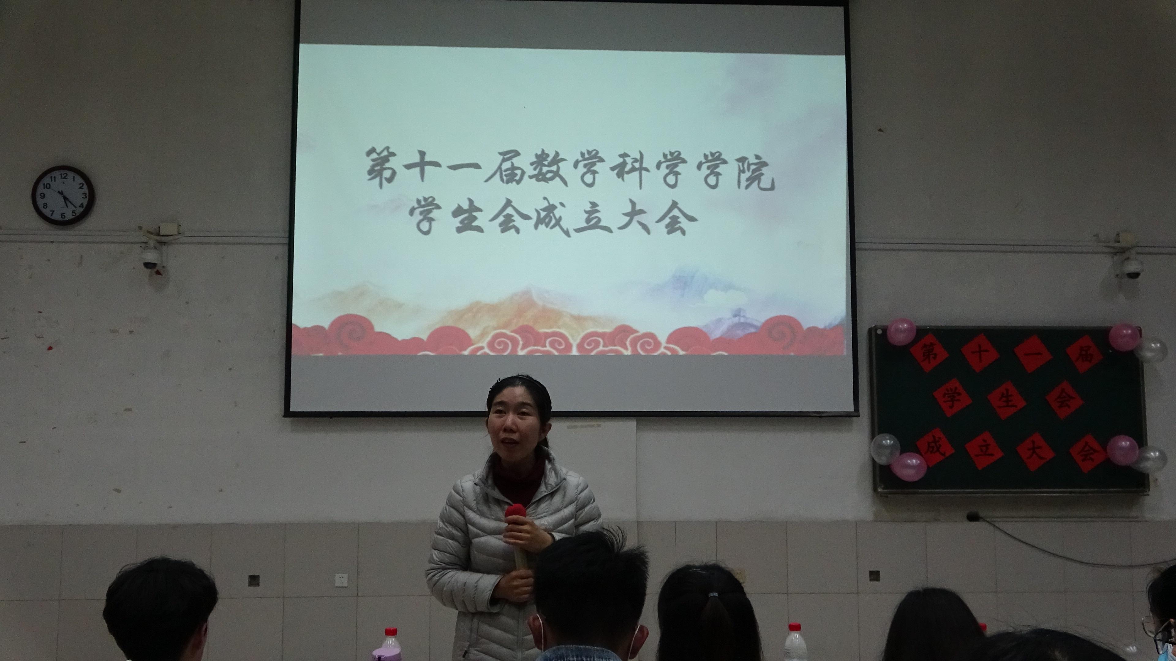 在二教201教室隆重举行第十一届学生会成立大会。团委书记赵华磊、第十届主席团代表张咬福以及学生会各分管主席、部长及全体干事出席了此次成立大会。