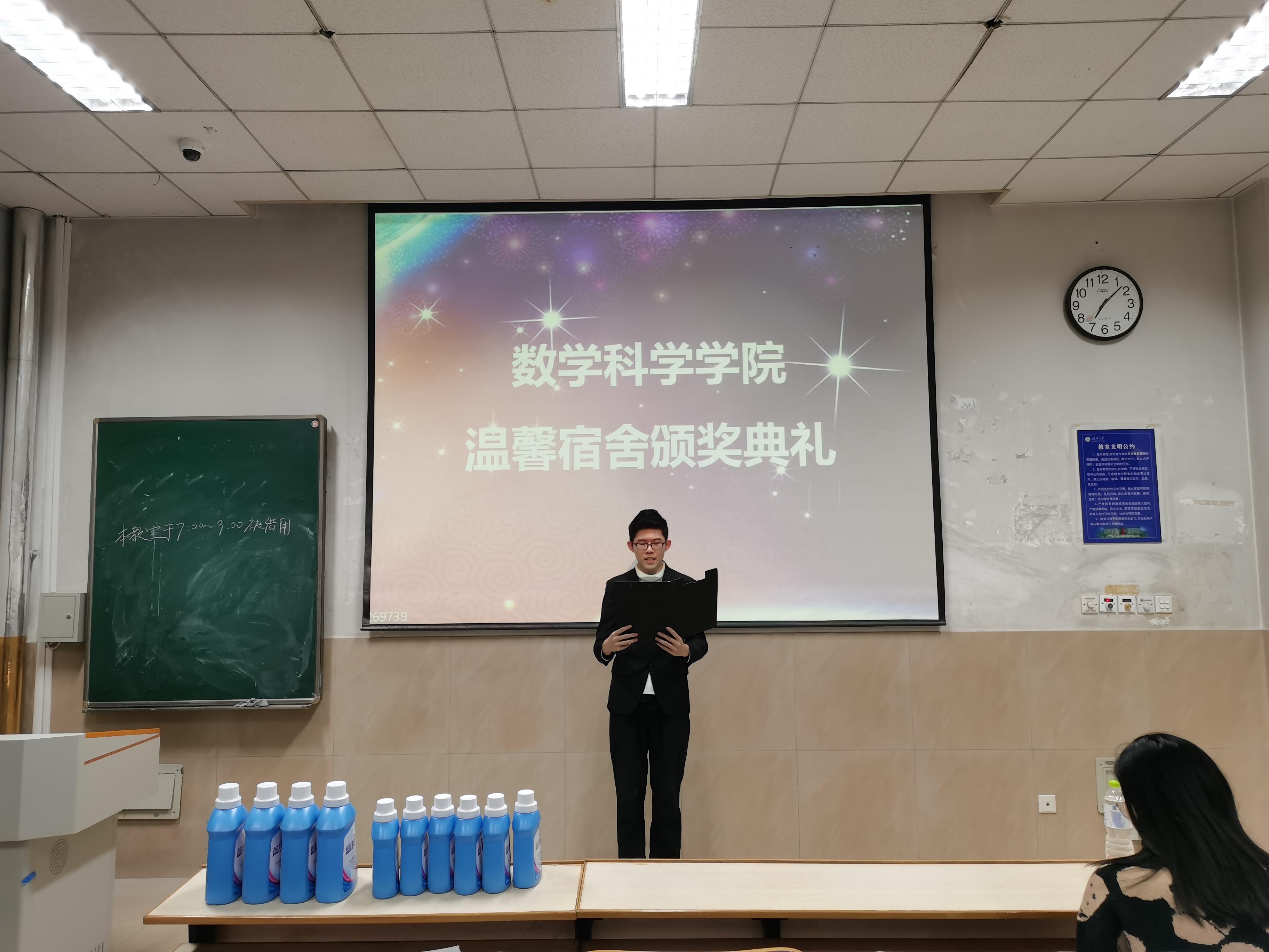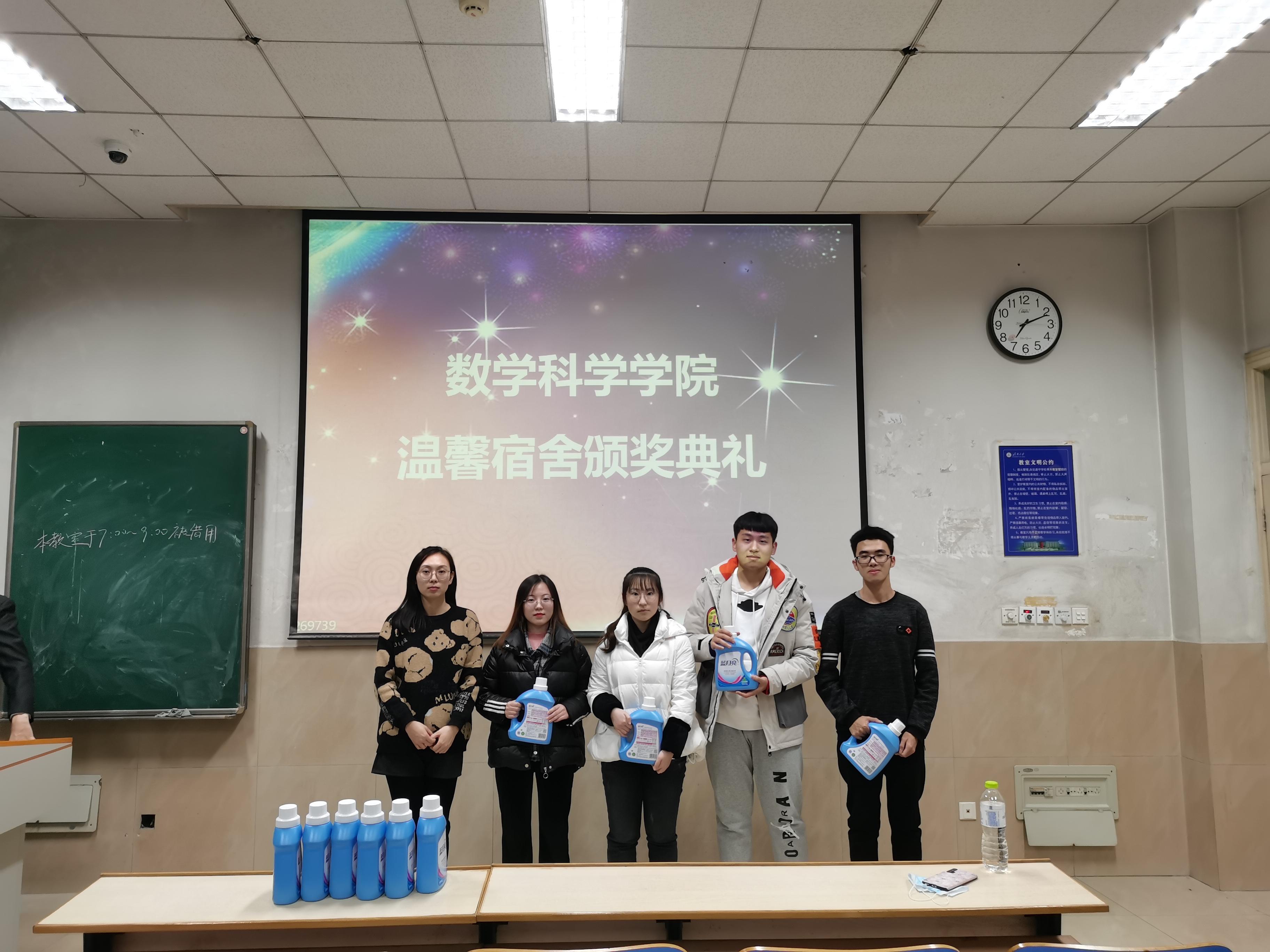 组织温馨宿舍活动评比并于12月2日晚在第一教学楼108教室组织举行颁奖典礼,19级辅导员房琳琳出席颁奖活动。