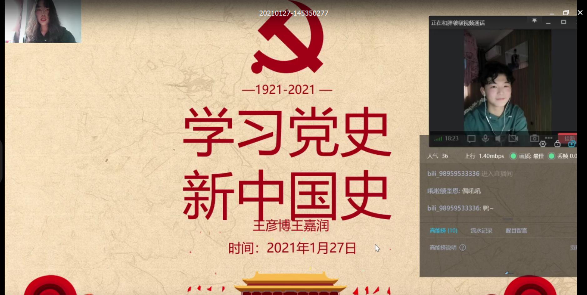 于1月27日下午三时在bilibili平台以线上的方式进行直播活动。希望通过此次活动让更多的同学深入的了解党史和新中国史并能够更好地体会党的革命精神。