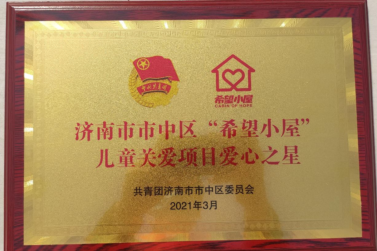 领受“希望小屋”儿童关爱项目爱心之星奖项