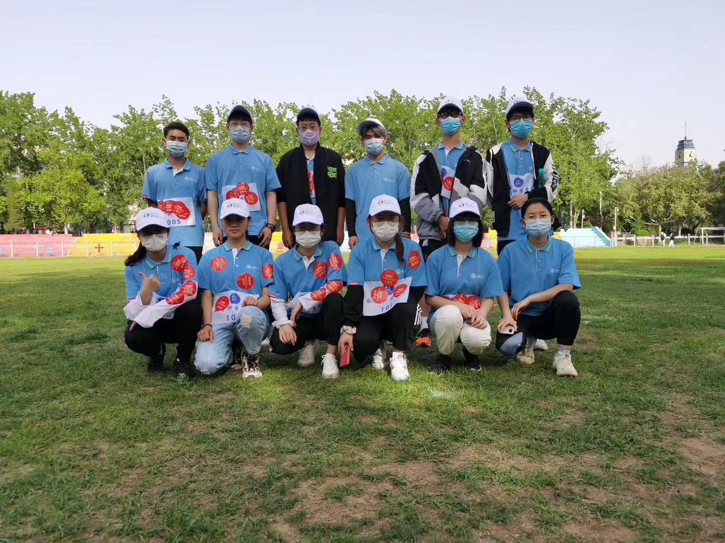的定向运动员们认真进行赛前热身活动。比赛分为男子组和女子组,每个院派男女各6人参加。每位参赛选手使用跑步软件记录比赛数据,根据校园定位图的线路完成每一个需要打卡的点位,并由各点标处裁判员在每位参赛者的衣服上张贴点位城市粘贴画,到终点后统一上交跑步软件的路线截图和检查点位粘贴画,小组全员通过后比赛结束。比赛过程中,每位运动员都积极参加比赛,遵守规则,互帮互助,以充沛的体力和昂扬的精神向着终点前进。