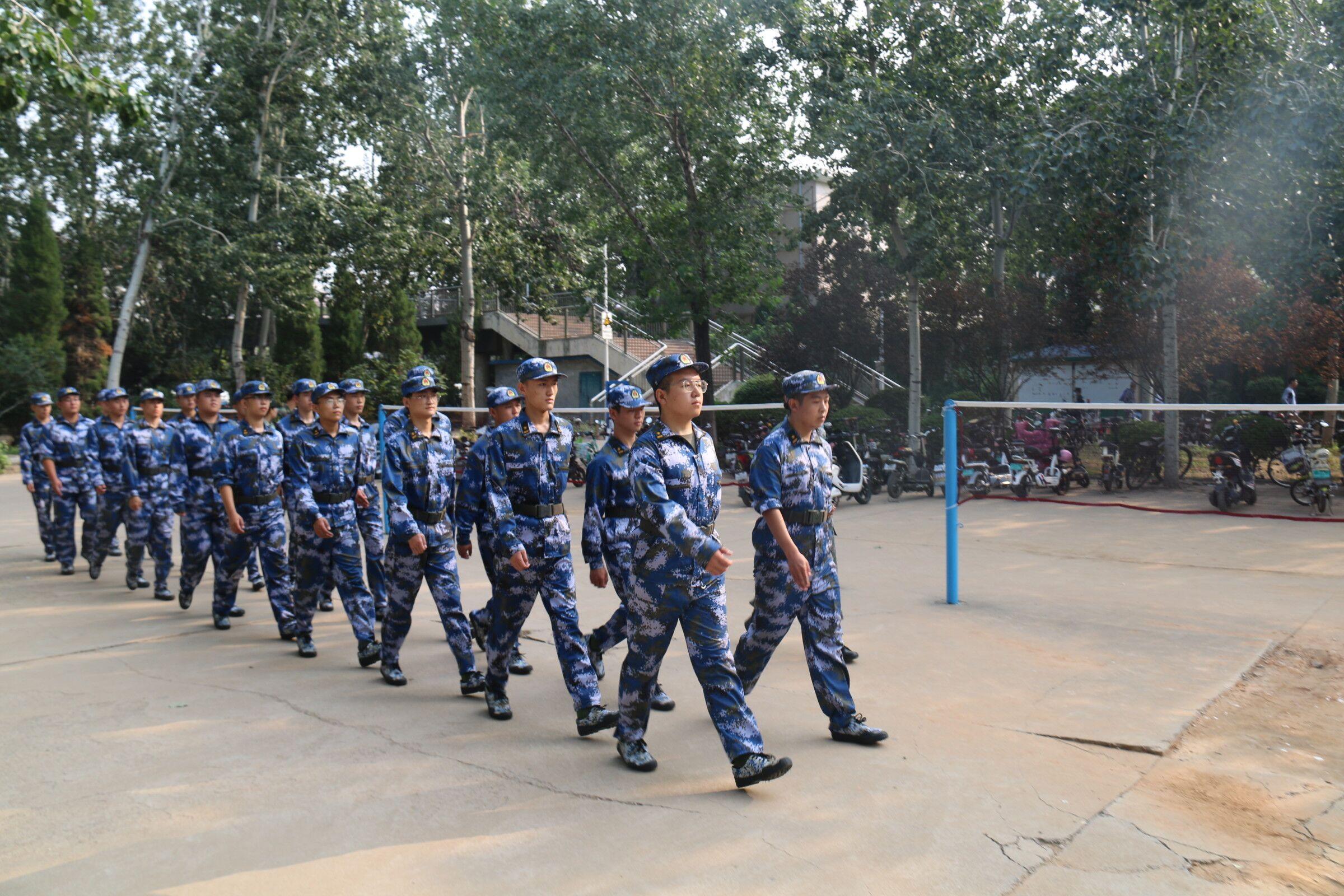 的学子的训练热情丝毫不减,积极地参与到了各个项目训练当中。在军训中,高温酷暑给军训工作带来困难,有的学生虽然病倒了,但凭借着顽强的意志,稍有好转便立即加入训练。在教官亲切的关怀和严格训练下,短短的几天里,齐步走、正步走、齐步变正步、解散和集合等预定训练科目已初见成效。教官手把手教,学生认真学,在军训队列比赛中,方队整齐划一,精神饱满,步伐矫健,口令准确,声音嘹亮。在训练休息的时间里,教官还会带大家表演节目,演唱了《团结就是力量》《强军战歌》等歌曲,气氛十分活跃。