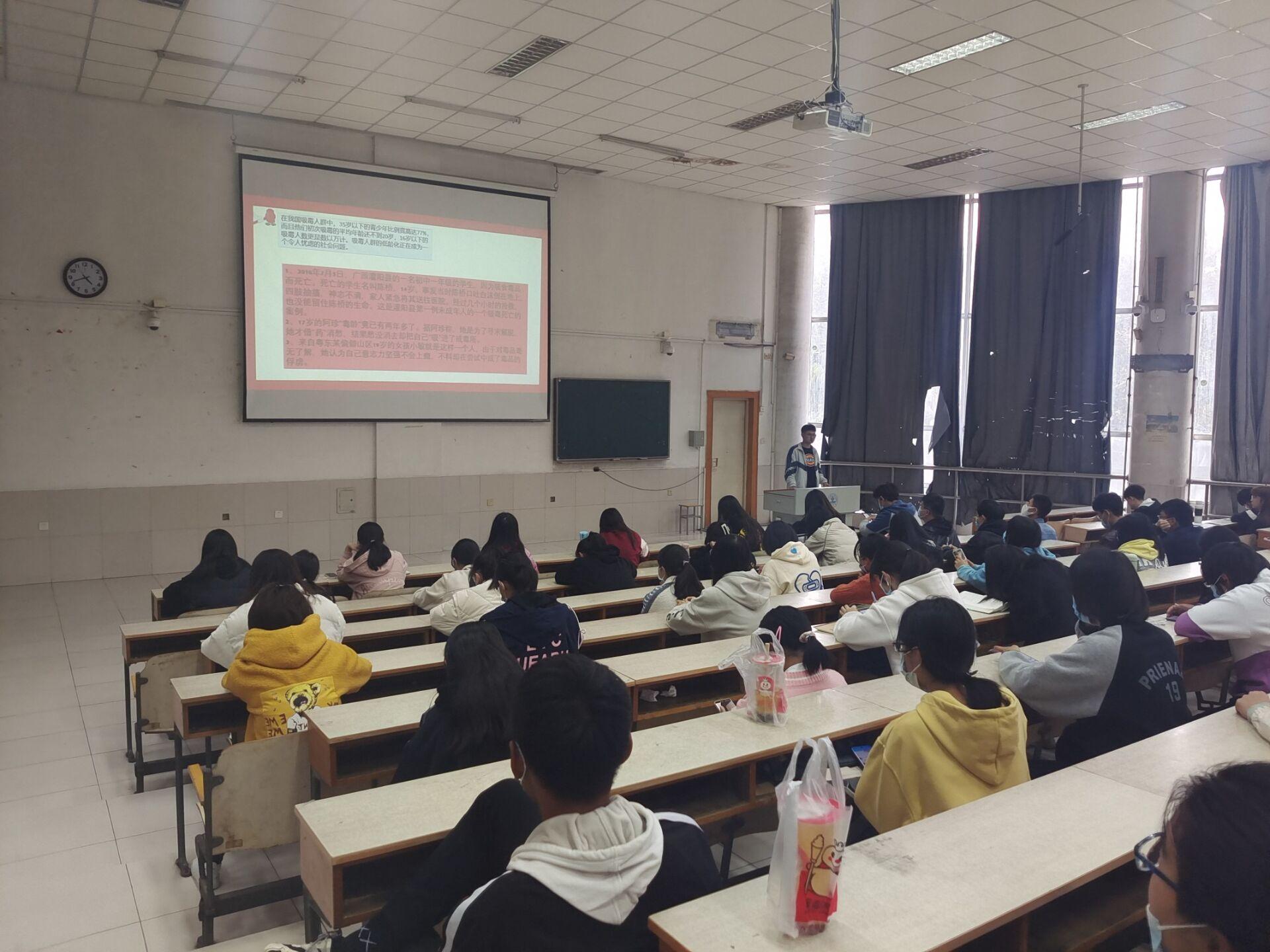 在2教201教室举办远离毒品宣讲会,全体学生干部参加此次活动。
