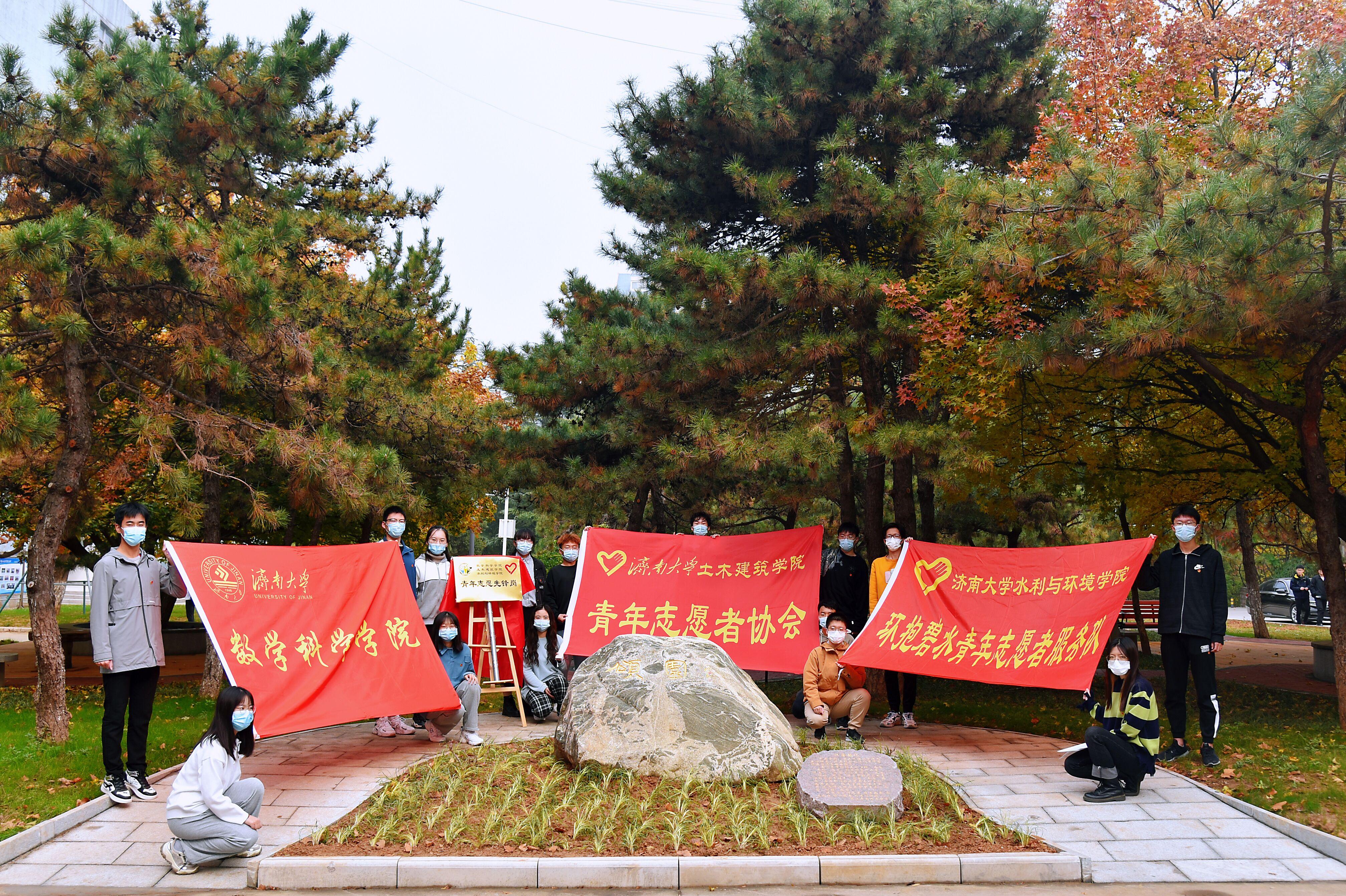 可以借此机会加强志愿服务的交流合作,扎实推进校内志愿服务工作。最后,来自数院、土建、水环的三位青年志愿者代表刘嘉宾、周婷、冯芳园共同为“颂园”揭牌。牌匾的“红盖头”被缓缓拉下——“青年志愿先锋岗”七个字映入众人眼帘,揭牌仪式在大家经久不息的掌声中落下帷幕。