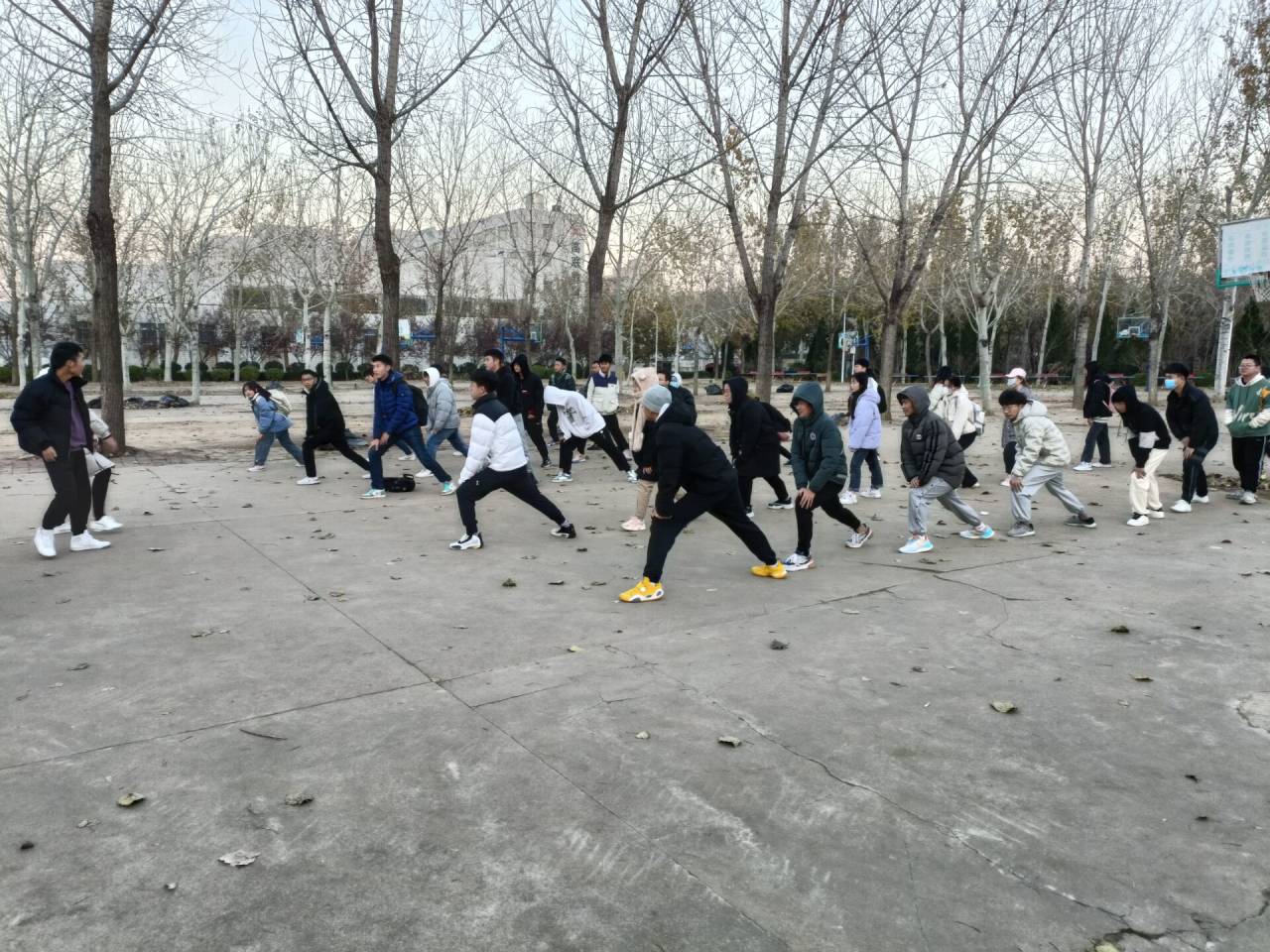 于11月24日早上7点在南苑篮球场举办冬锻二项户外活动,本次活动以班级为单位开展,大一大二学生积极参与。