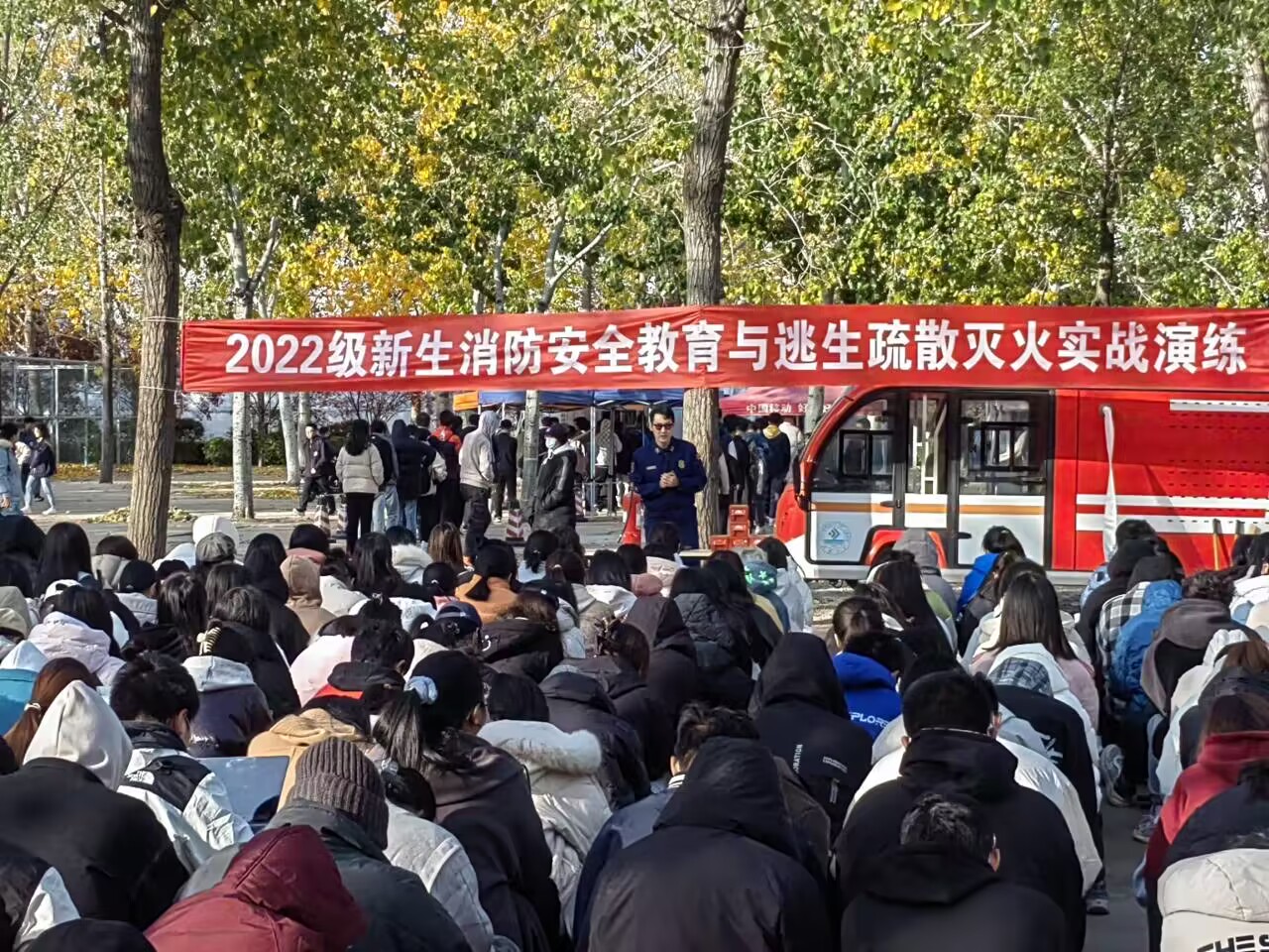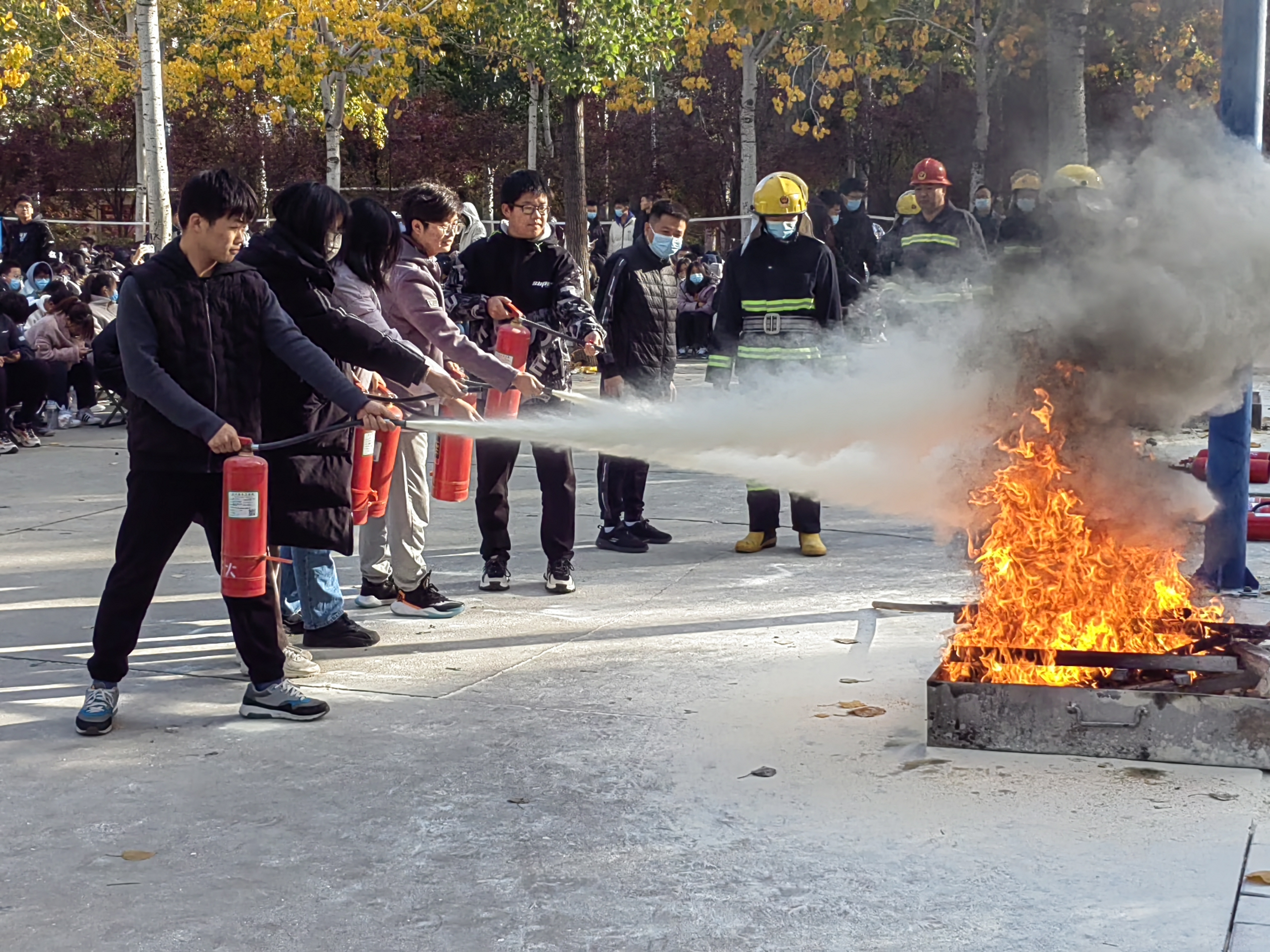 于11月13日在南院篮球场进行消防安全教育与逃生疏散灭火实战演练 。
