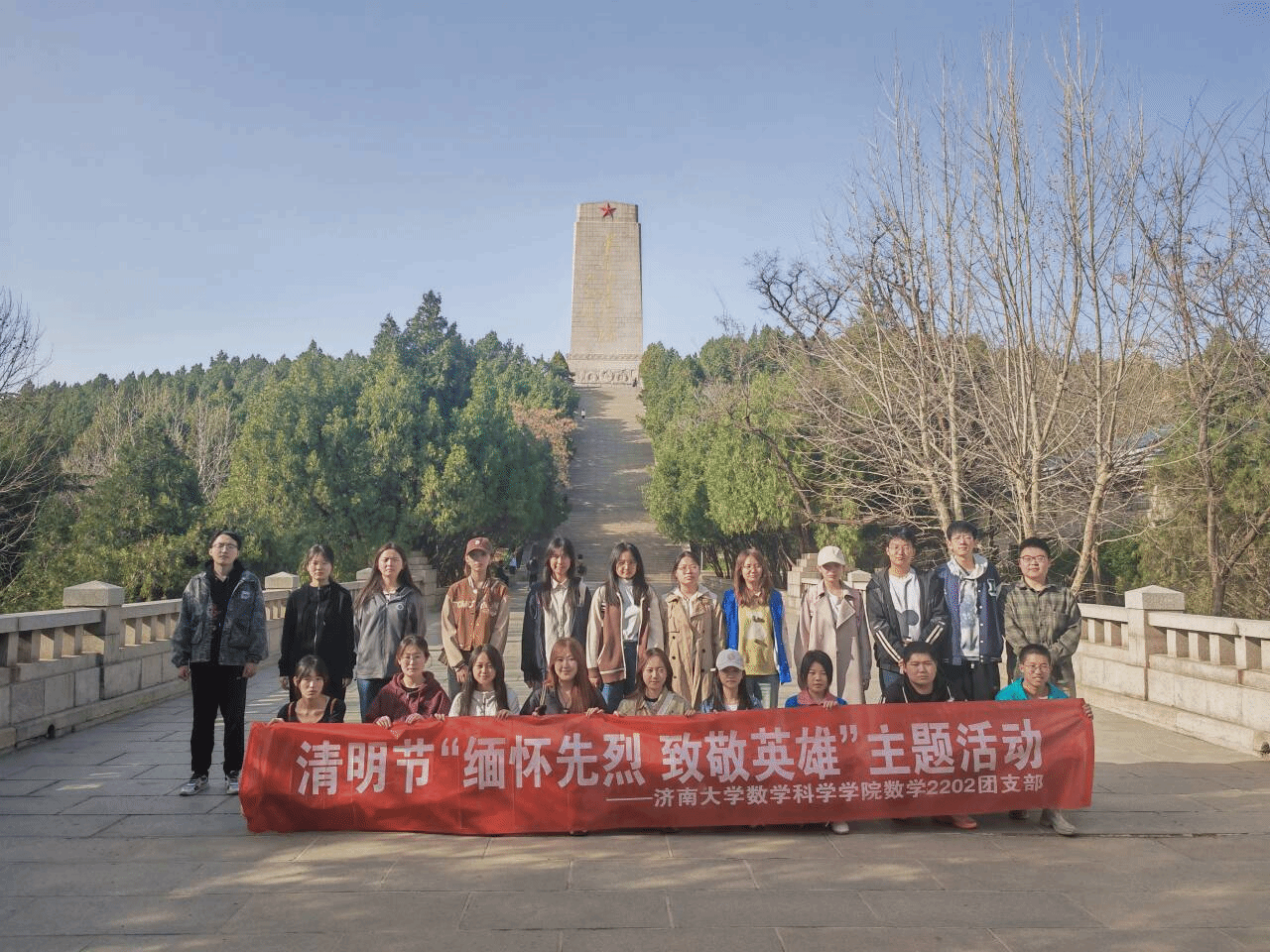 经过团支部周密的策划和组织,数学2202班的同学们满怀热情地前往济南英雄山风景区。活动伊始,同学们有序依次步入展览馆,一走进序厅便被眼前巨大的方形雕塑所吸引,雕塑呈现倾斜态势,巨大的军号象征着济南战役吹响解放战争的号角。在讲解员的带领下,面对大量的史实资料及实物展示,他们认真听取了济南战役的发展形势,了解了这段波澜壮阔的历史,真切地感受到无数革命先烈不怕牺牲、宁死不屈的伟大精神。同学们深受感染,纷纷表示要珍惜今天来之不易的幸福生活,刻苦努力学习。随后同学们走进全景画馆,仿佛穿越时空,走进了炮火连天、群英会战的战场实景,如临其境的视听感受加深了同学们的印象,为曾经发生在这座古老城市的悲壮战斗所震撼。走出纪念馆后同学们来到由毛泽东亲笔题词的革命烈士纪念塔。热血铸丰碑,英雄垂青史。回首那段充满红色硝烟的岁月,革命烈士用鲜血换来和平安宁的生活,而如今他们的英灵在此长眠。同学们长久地注视着巍然矗立的纪念塔,感受革命先烈的英勇精神,更加坚定了他们的理想信念。