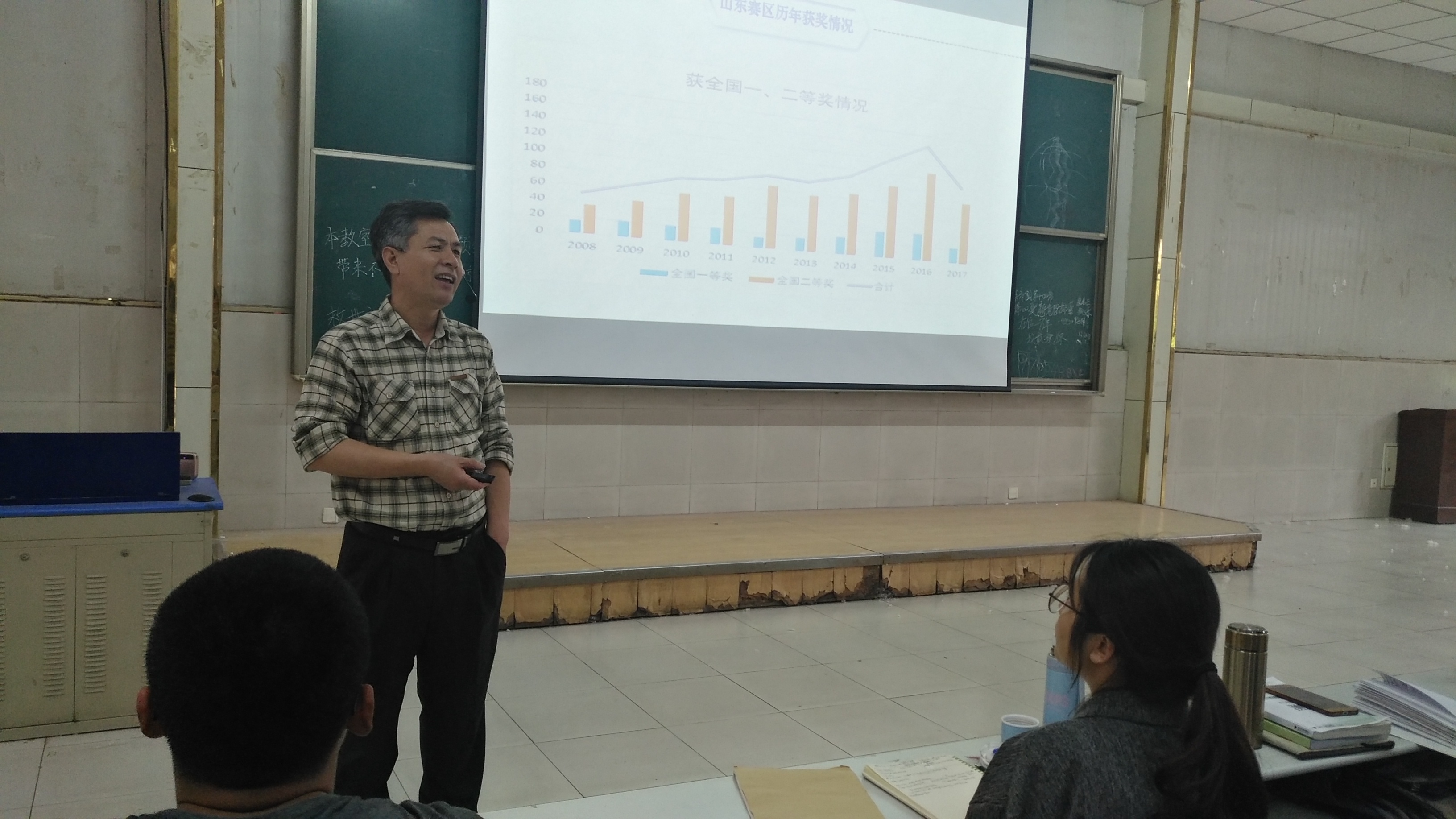 刘保东教授的报告首先以大量的实例展示了数学思维和数学建模思维的本质,然后深入细致地介绍了数学建模的基本方法和高质量的数学建模论文的标准,最后着重讲了近两年由于网络便利导致的建模竞赛中的违纪问题,以及竞赛组委会对违纪的处分规定,督促学生以诚信的精神做好数学建模这项极具意义的科研工作。刘教授的报告深入浅出、风趣幽默,和学生互动频繁,拓宽了学生的视野,加深了学生对数学及其应用的认识,提高了学生学习数学和数学建模的兴趣。近三个小时的报告会学生们始终兴致盎然。会后,刘教授又和老师们就一些具体工作方法进行了交流和探讨。
