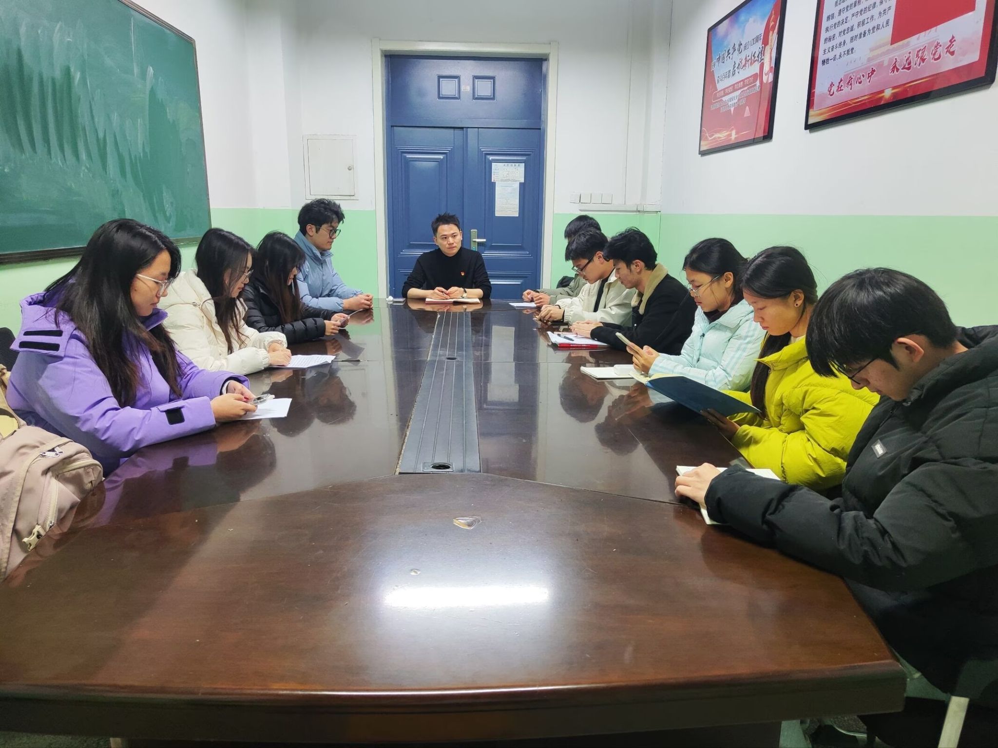 同时,以关键会议凝聚工作合力,召开2025-2026学年学生会主席团工作会议,将全会精神融入学生组织建设、活动策划、服务同学等核心工作,明确“以学促干、以干践学”的工作思路;以2025年下半年新发展团员入团仪式为契机强化思想引领,引导新团员从入团之初就将全会精神内化于心、外化于行。开展团支部书记专题培训会,邀请优秀团支部书记代表分享团务工作经验,通过“以老带新”“以点带面”模式,提升基层团组织将全会精神转化为工作实效的能力。