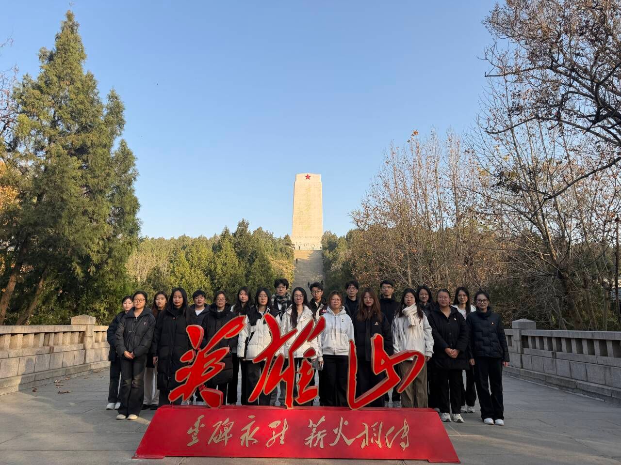 11月5日,组织新发展团员、“青马工程”第十五期大学生骨干培训班学员集体参观《伟大胜利——济南战役史实展》,通过珍贵影像、实物资料重温烽火岁月,体悟革命先辈的忠诚信仰与无畏牺牲,从本土英雄事迹中汲取奋进力量。11月29日,赴英雄山开展“红色教育+志愿服务”主题团日活动,全体团员在济南战役纪念馆前重温入团誓词,娱乐城App