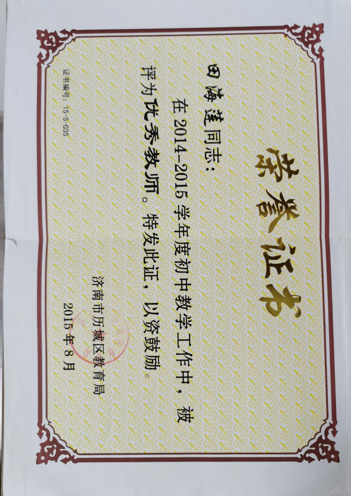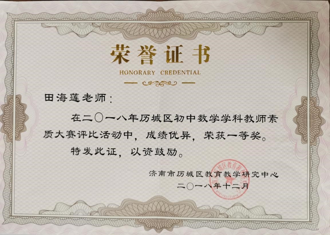 教给的视导课、观摩课、公开课,积极参与课题研究,让自己不断成长。多次撰写论文,获得省市一等奖。2011年获得”历城区数学优质课一等奖”。2012年、2017年两次获得”历城区教学能手称号”。2014年成为”历城区数学中心组成员。”2016年、2018年两次获得历城区数学学科素质大赛一等奖。2017年、2021年两次获得山东省“一师一优课,一课一名师”省级优课。