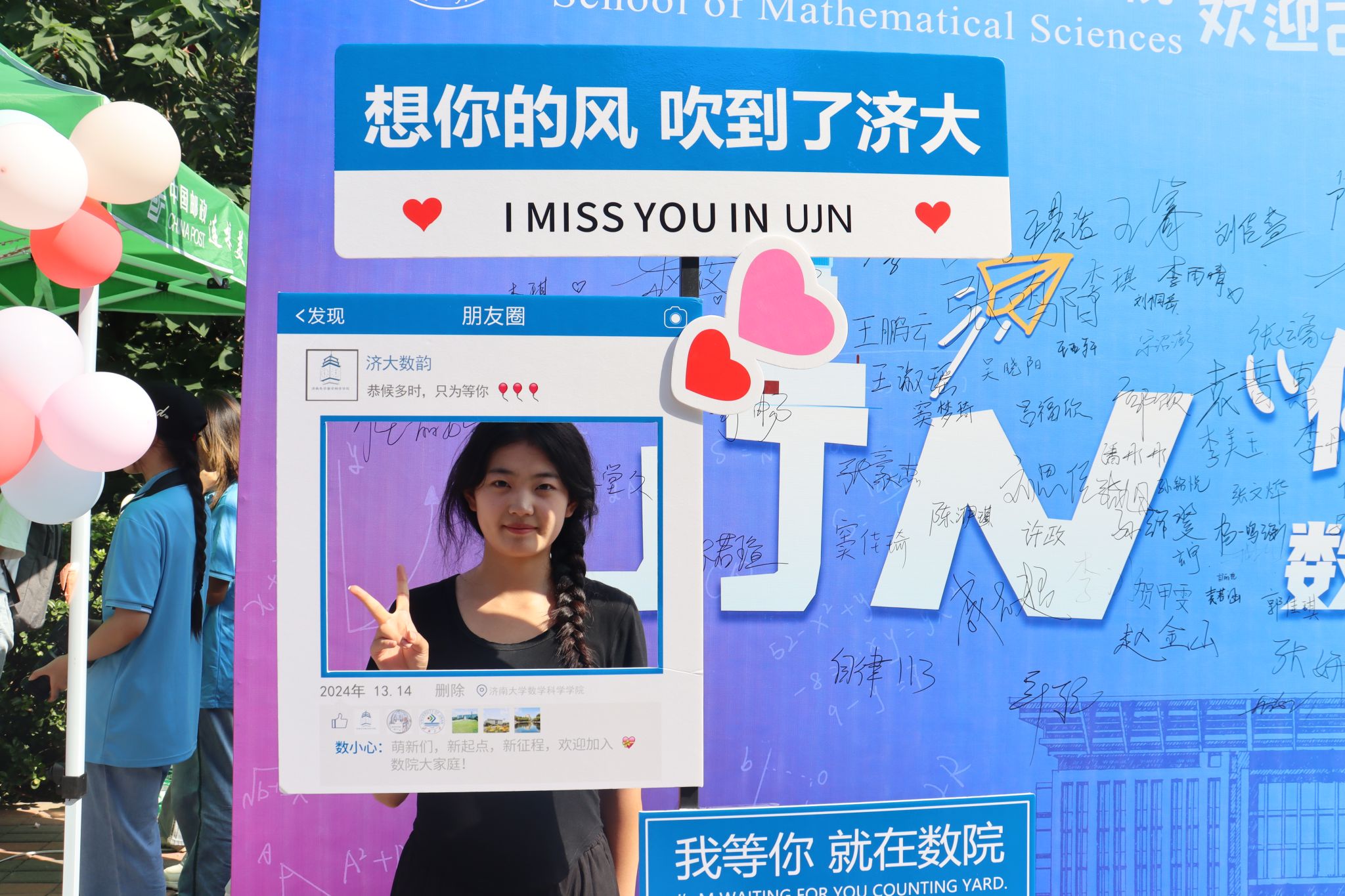 科创育人、实践育人、历年推免情况等宣传展板,引导新生坚定理想信念、树立远大理想、开启学术追求,特设文化签名墙和创意书签,在互动中拉近了新生之间的距离,更好地感受大学的文化氛围,彰显文化育人功能。一条条暖心的标语既饱含了殷切期望,更是对新生的美好祝福。