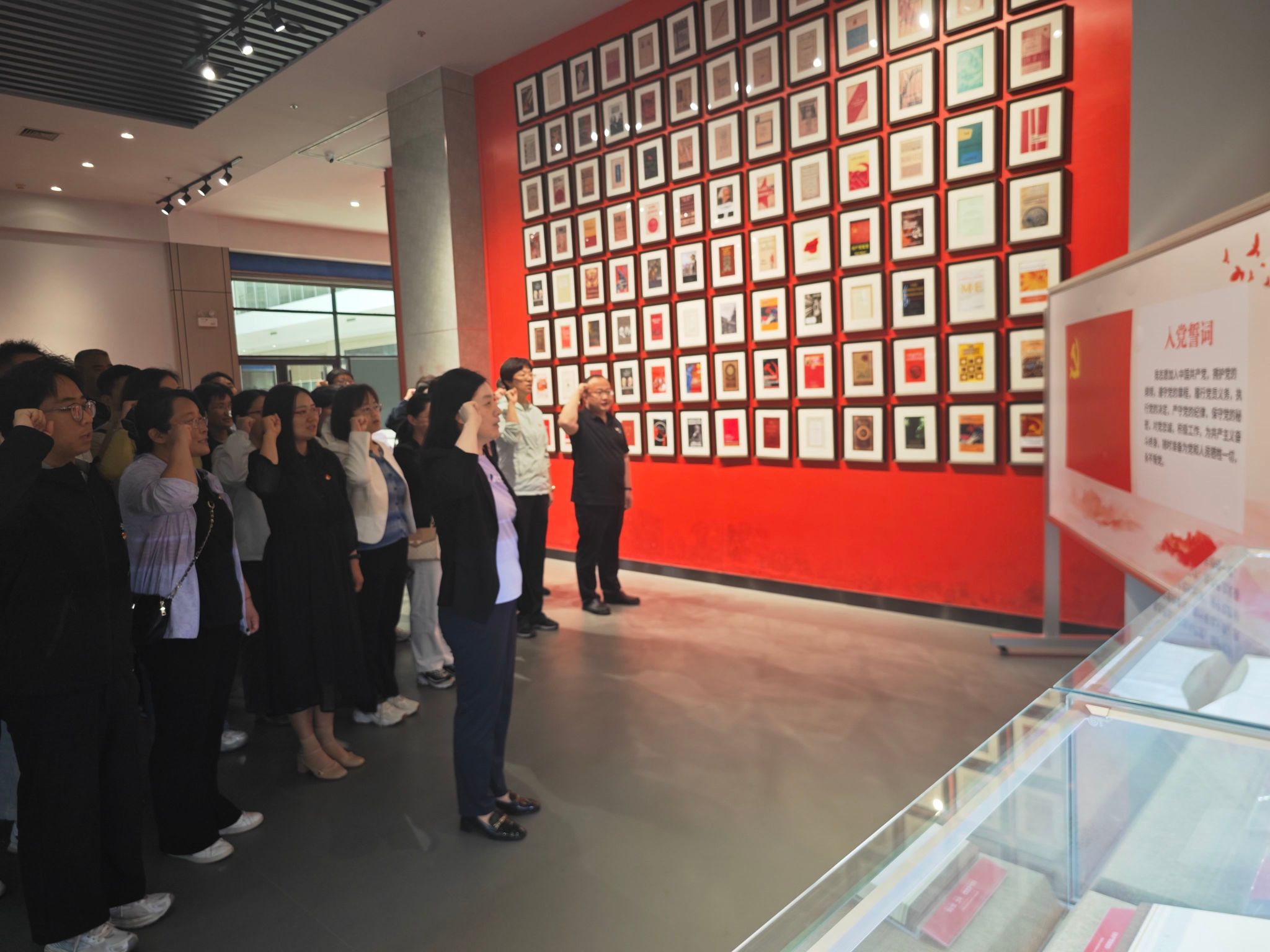 在展馆讲解员的引导下,党员们依次观摩了“宣言问世”“大道行远”“日出东方”“砥砺奋进”和“伟大复兴”五个部分,感悟真理光辉,汲取精神力量。展馆内陈列了多个版本的《共产党宣言》珍贵文献、中国共产党成立初期的重要历史图片与实物,以及中国共产党人践行初心使命的生动故事。通过一幅幅图片、一件件文物,师生党员们系统了解了《共产党宣言》的诞生背景、传播历程及其对中国革命和建设的深远影响,深刻感悟马克思主义真理力量与中国化时代化的伟大实践成就。在鲜红的党旗下,全体党员庄严举起右拳,重温入党誓词。铿锵有力的誓言回响在展馆内,彰显了新时代共产党员的坚定信念与责任担当。师生党员还参观了山东交通娱乐城App